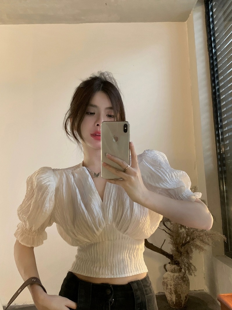| nameOriginal | QGZ Seventh Princess French Style Hot Girl V-neck Short Sleeve Shirt Women's Summer Design Slim Short Top |