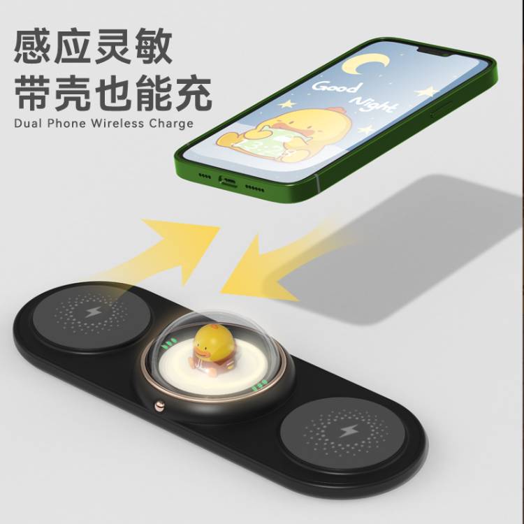 Qi fast charging cartoon wireless charger 2-in -1 multi-function for Xiaomi Apple Huawei mobile phone headset dual charging