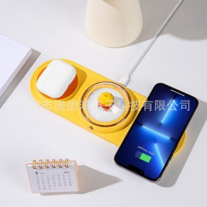 Qi fast charging cartoon wireless charger 2-in -1 multi-function for Xiaomi Apple Huawei mobile phone headset dual charging
