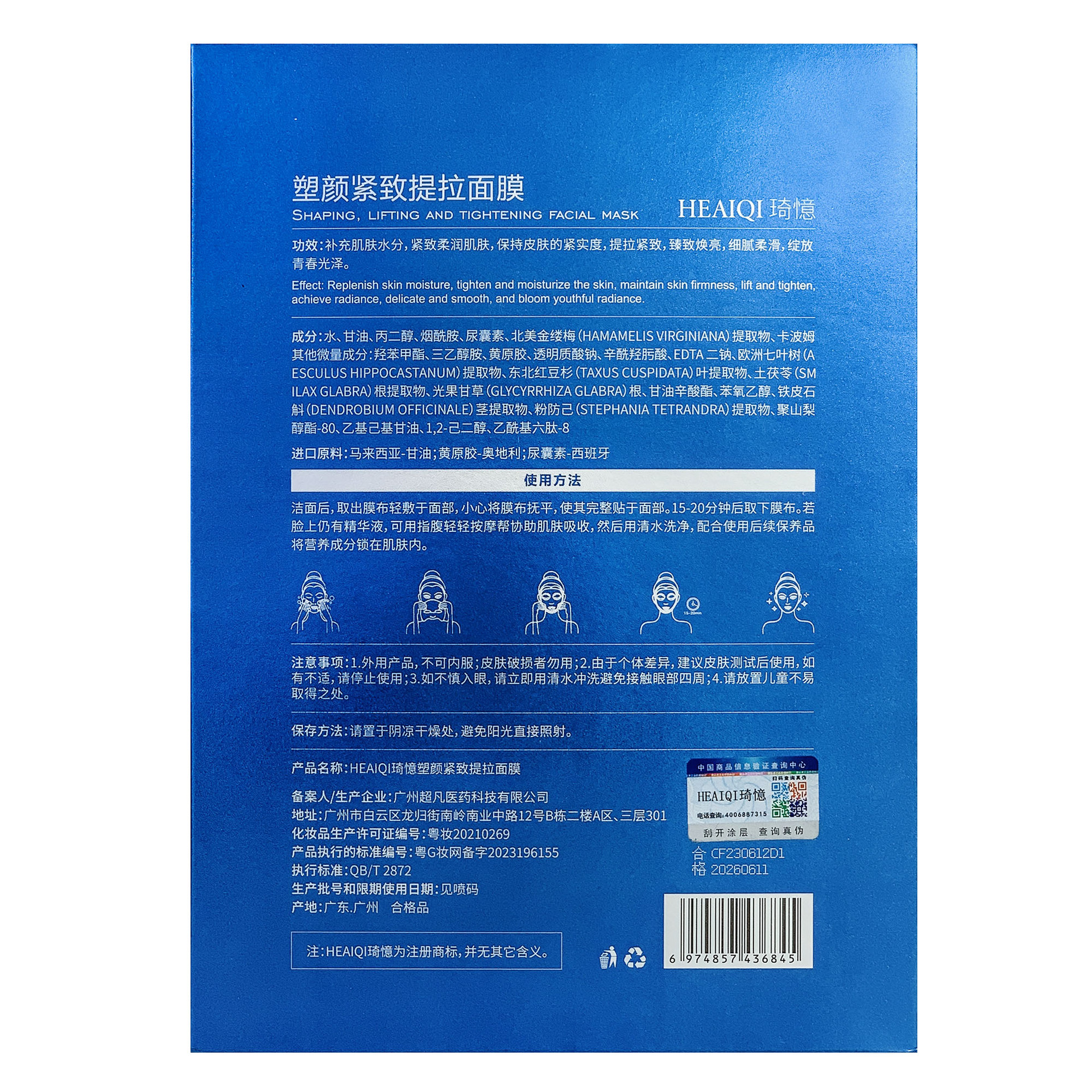 | nameOriginal | Qi Yi 3D lifting V face mask beauty salon lifting small V face nicotinamide allantoin anti-wrinkle hydrating Moisturizing Mask |