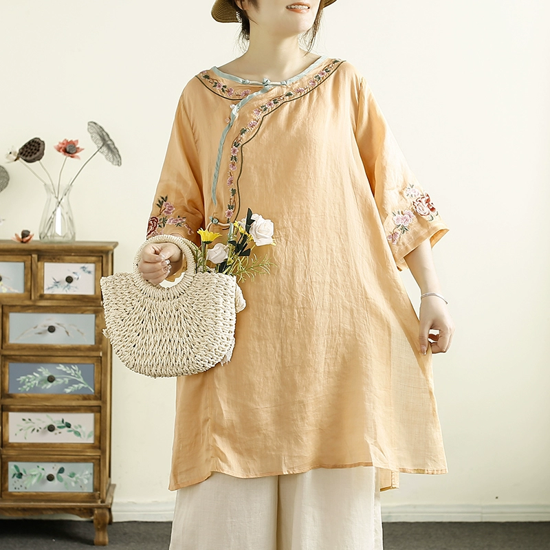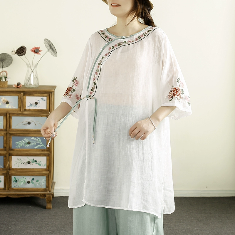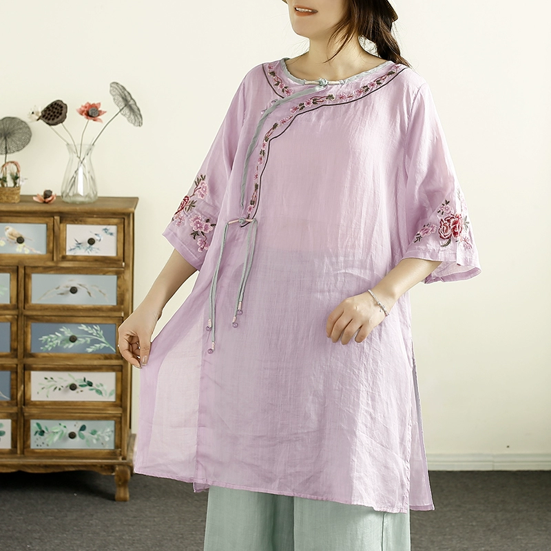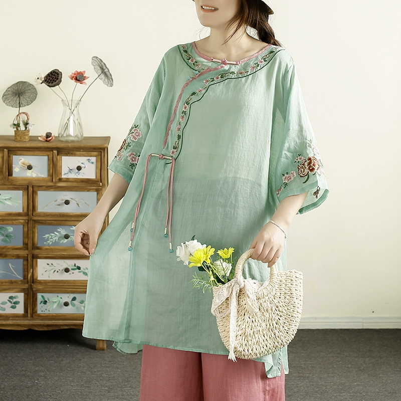 Qianqiu Feiyan Guofeng tassel ramie oblique lapel embroidery