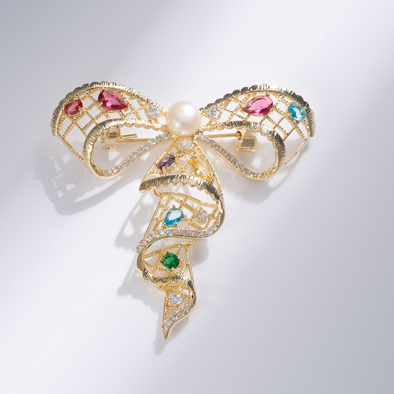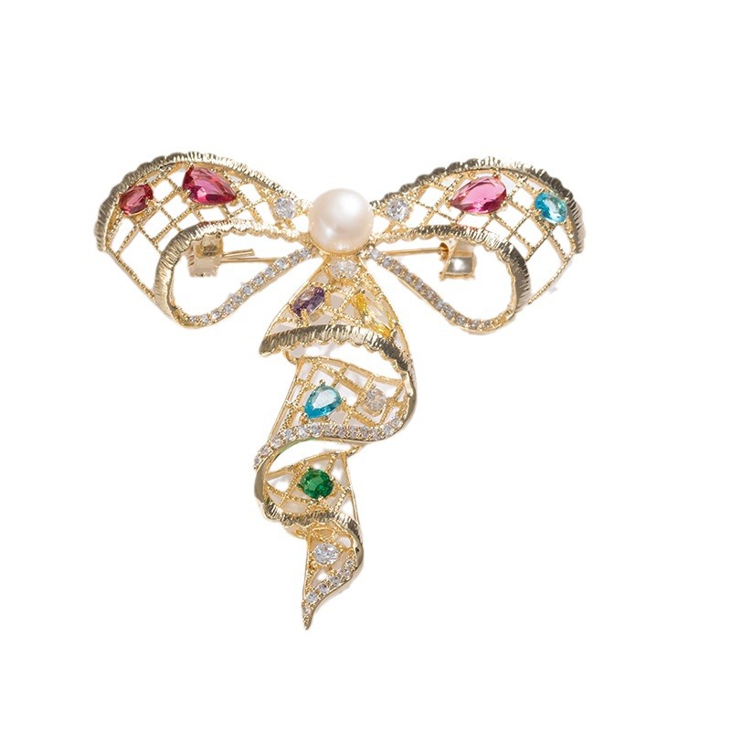 | nameOriginal | Qianyu silver French sweet style colorful zircon bow brooch female anti-exposure fairy dress pin gift |