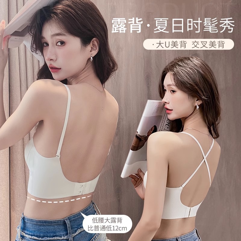 Qiao Shini Summer Ice Silk Thin Underwear Women’s Traceless U-shaped Backless Anti-running Light Integrated Sling Bra