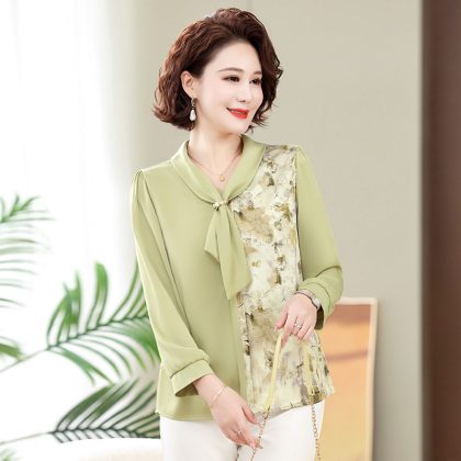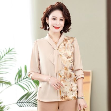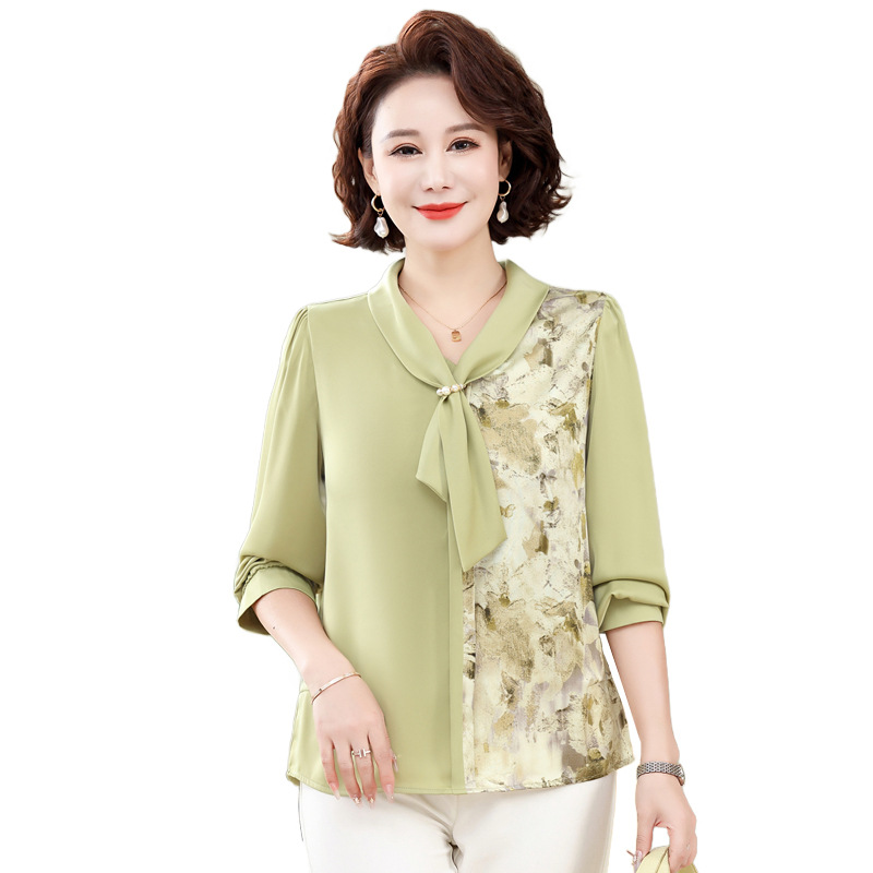 nameOriginal | Qiaoyaying middle-aged and elderly women's top 2024 spring printed contrast color foreign temperament floating leading mother's shirt |
