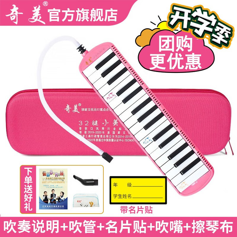 Qimei mouth organ children Primary School school teaching mouth organ 32 key little beauty pink (EVA hard bag