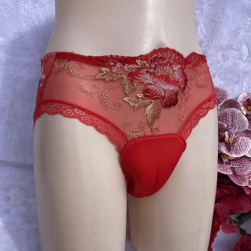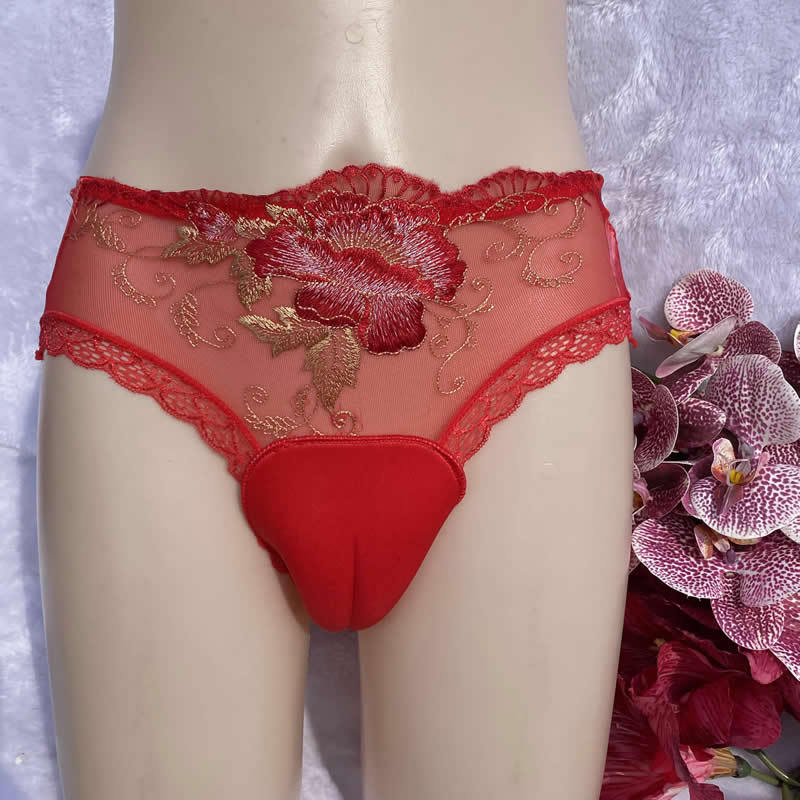 | nameOriginal | Qimei triangle flower sexy lace underwear CD dress JJ pants shaping crotch underpants hidden |