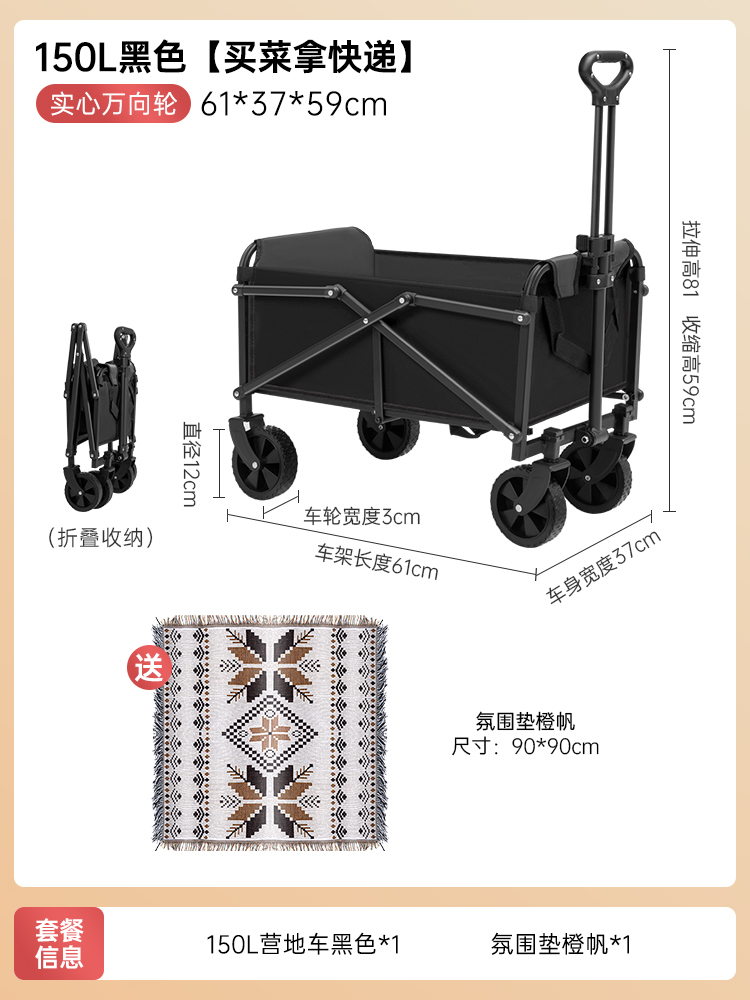 | nameOriginal | Qing Department Outdoor Portable Camper Trolley Folding Picnic Trolley Hand-pushing Camp Trolley Camping Trolley Storage |