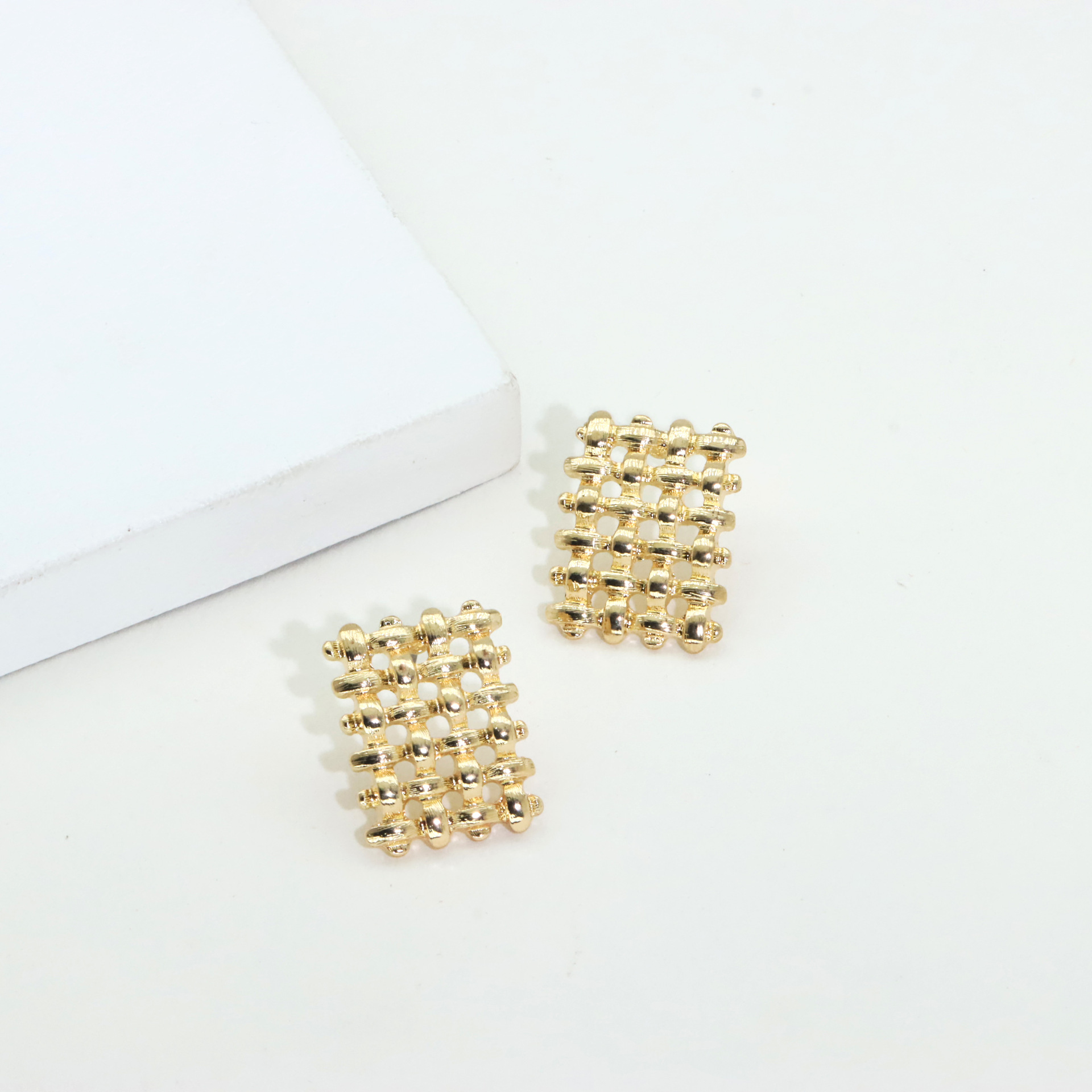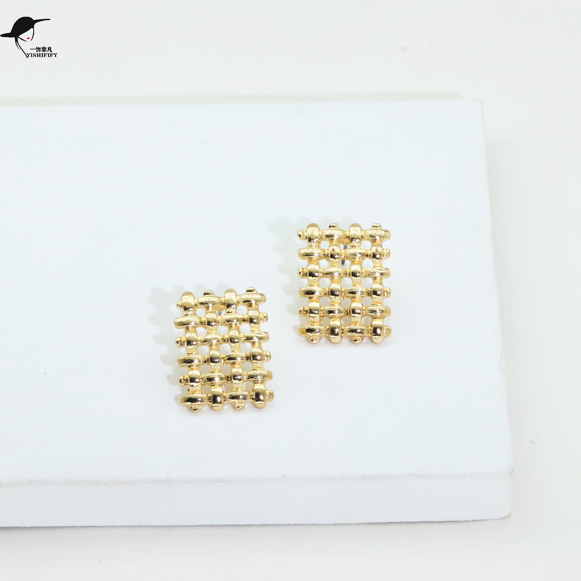 Qingdao European and American earrings simple square hollow woven pattern earrings cross-border platform hot earrings