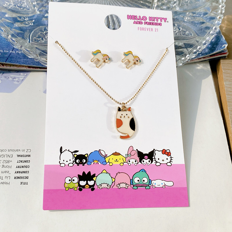 | nameOriginal | Qingdao European and American foreign trade accessories KT cat trendy dripping oil personalized earrings necklace fashionable clavicle chain set |