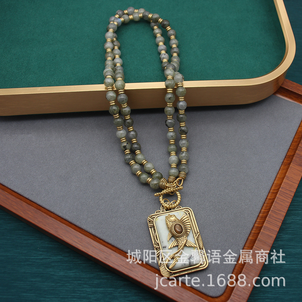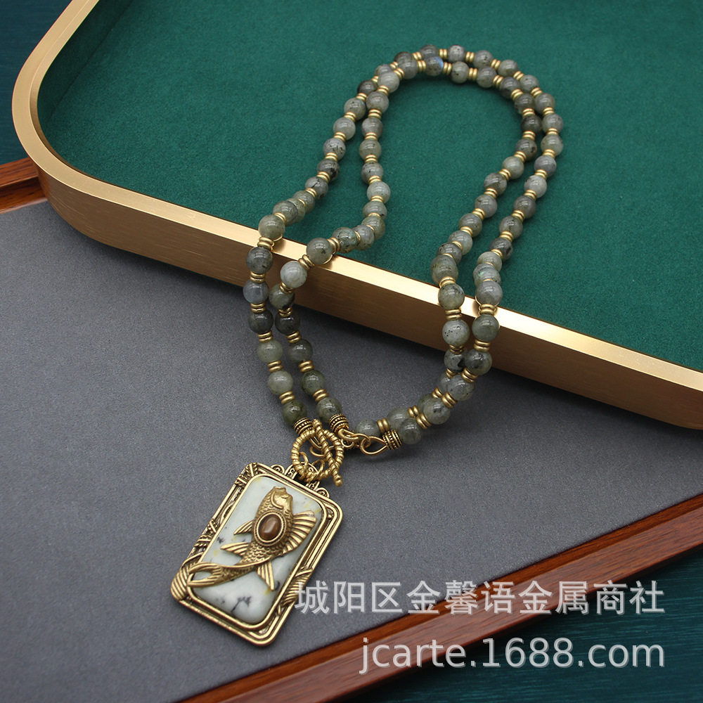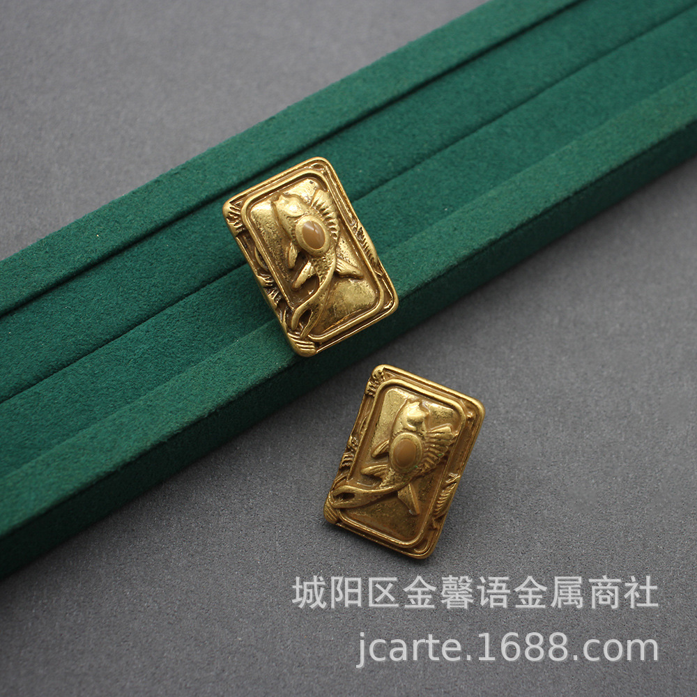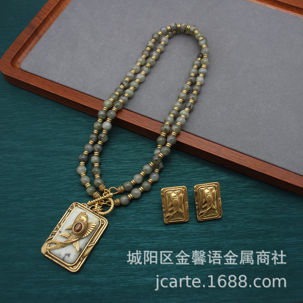 | nameOriginal | Qingdao source factory Italian heavy industry retro carving goldfish stone beaded nothing card pendant earrings suit |
