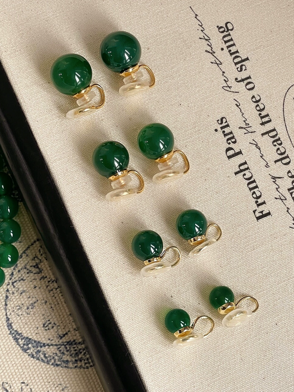 Qingye Natural Pure Silver New Chinese Retro Green Agate