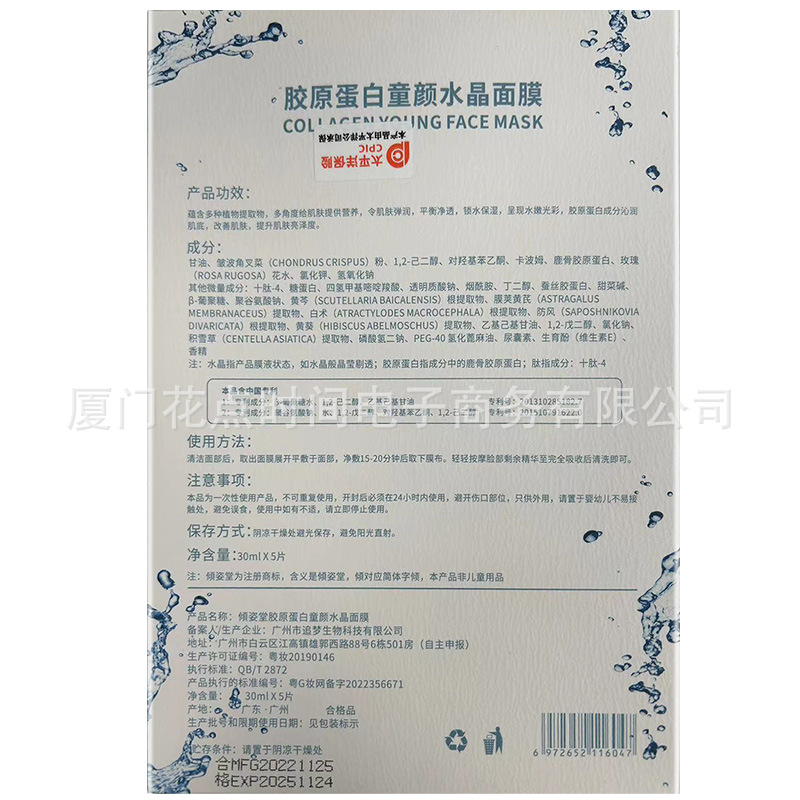 | nameOriginal | Qingzitang Collagen Children's Facial Mask Repair Muscle Bottom Crystal Hydrating Moisturizing Filling Mask |