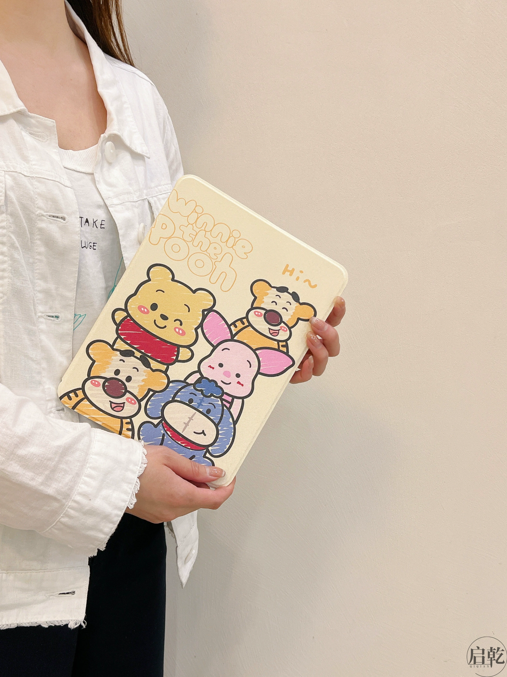 Qiqian Winnie the Pooh Strawberry Bear suitable for ipad protective case air5 with pen slot 11 inch mini6 Apple pro tablet 2022 magnetic suction 2021 all-inclusive book-style rotating stand 2018 women