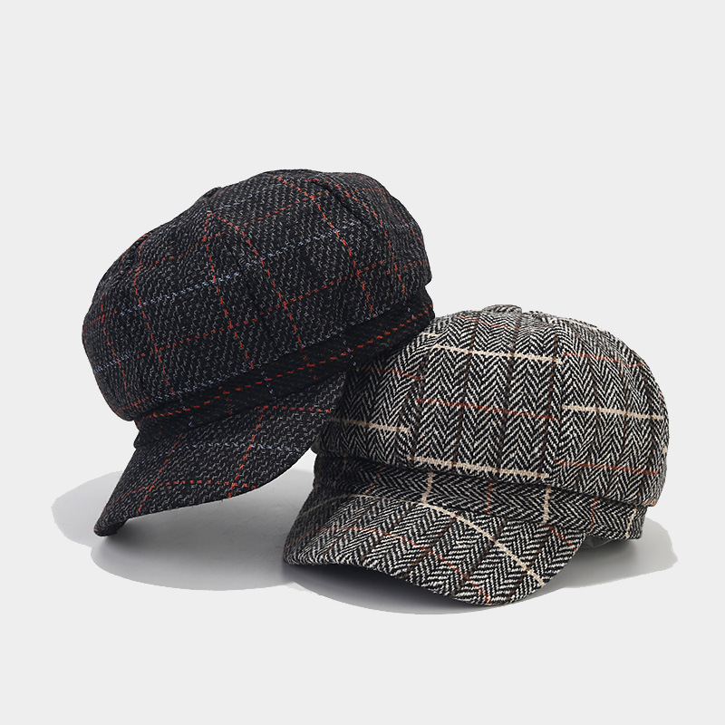 | nameOriginal | Qiqu Autumn and Winter British Retro Classic Plaid Octagonal Hat Women's Face Small Short-brimmed Casual Cap Men's Fashion Newspaper |