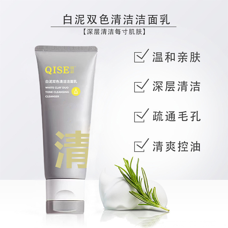 | nameOriginal | QISE facial cleanser hydrating cleansing amino acid facial cleanser moisturizing oil control blackhead removing white mud two-color cleansing |