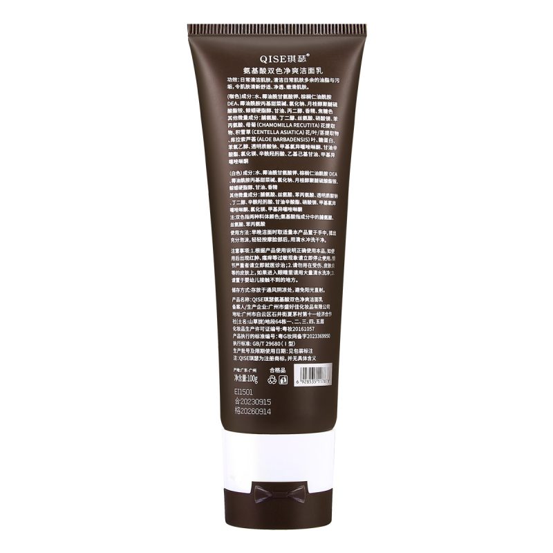 | nameOriginal | Qisser Double Tube Facial Cleanser Amino Acid Cleansing Acne Acne Blackhead Shrinking Pore Curry Color Facial Cleanser Wholesale Facial Cleanser |