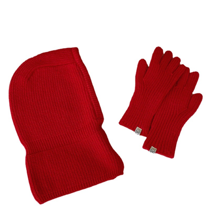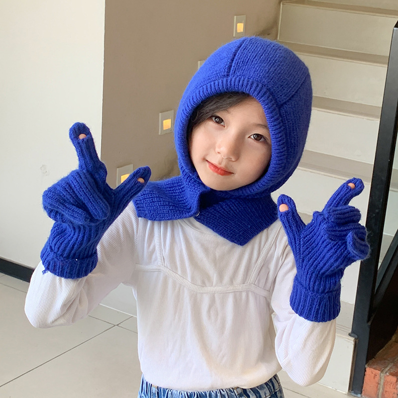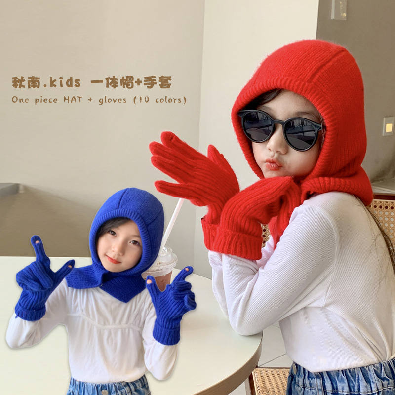 Qiu Nan Children’s Hat and Scarf One Winter 2022 Korean Solid Color Gloves Baby’s Wool Hat Three-piece Set