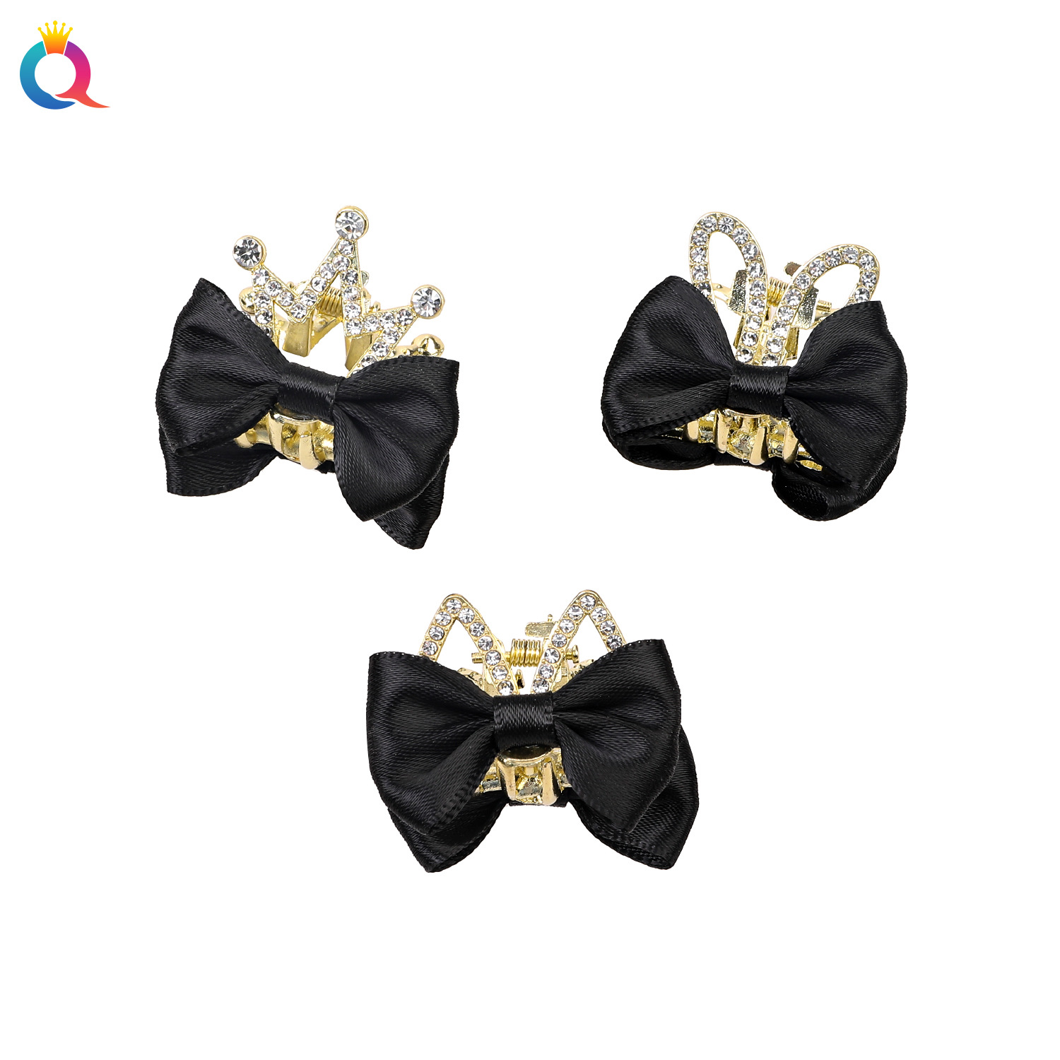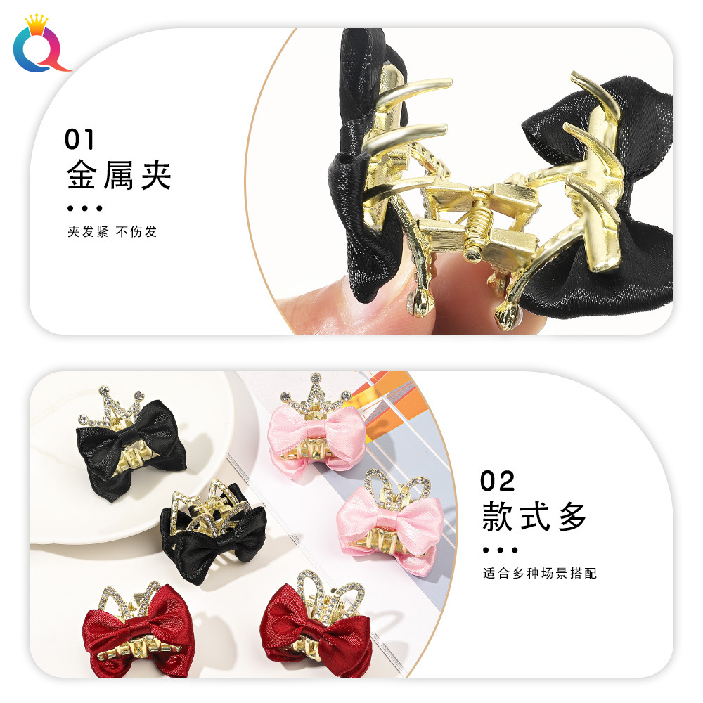 Qiyue Cute Bow Hair Grasp Diamond Metal Hairpin Women’s Small Half-tie Grasp Shark Clip Hair Accessories Wholesale