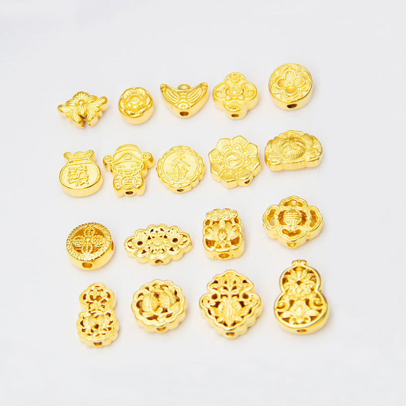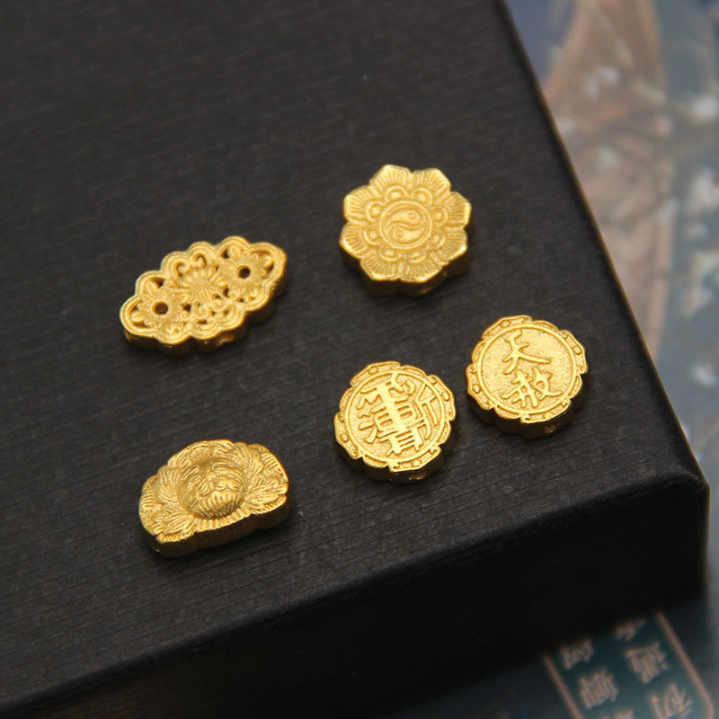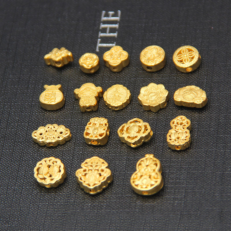 Quality sand gold carved old gold flower good Moon round hollow beads diy necklace accessories bracelet accessories in stock wholesale