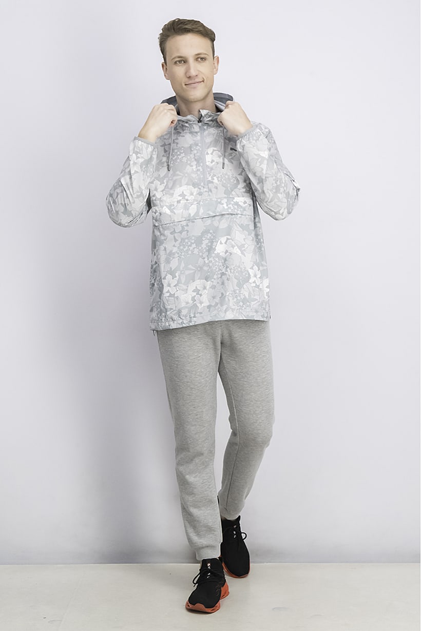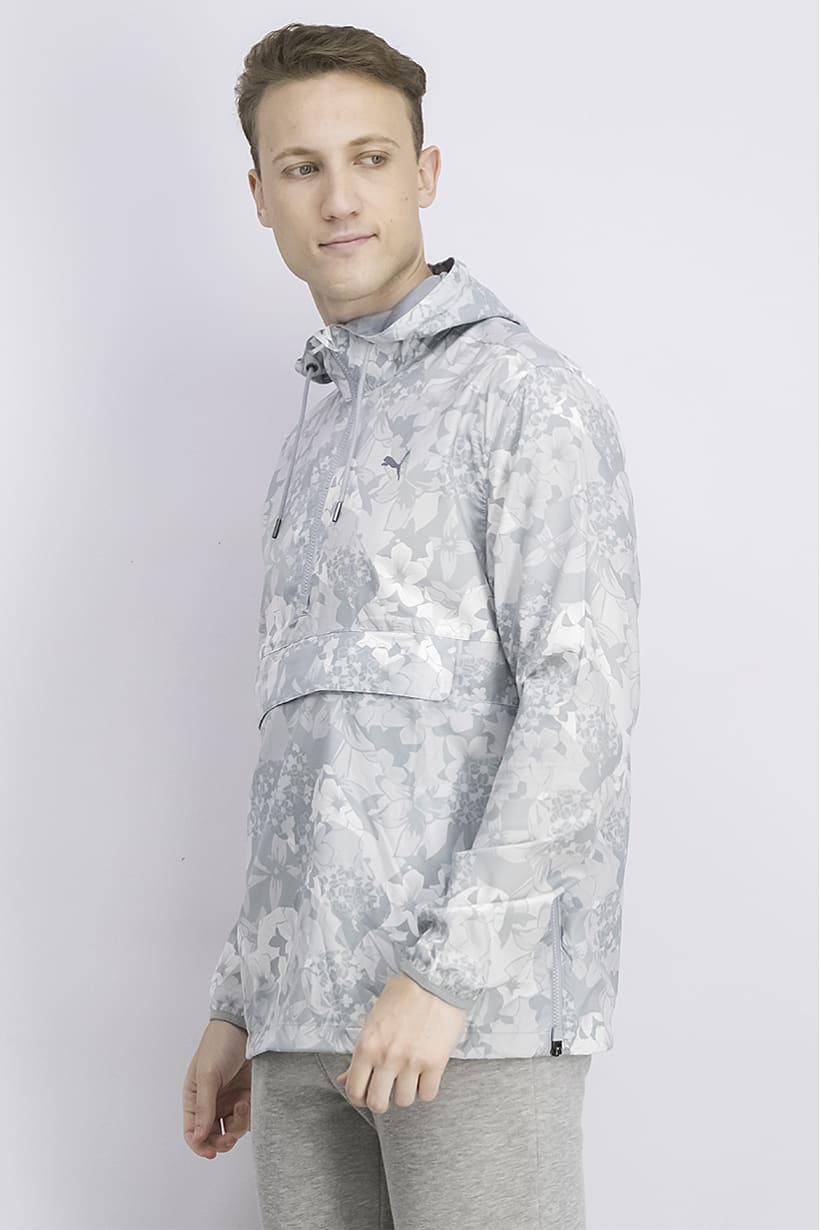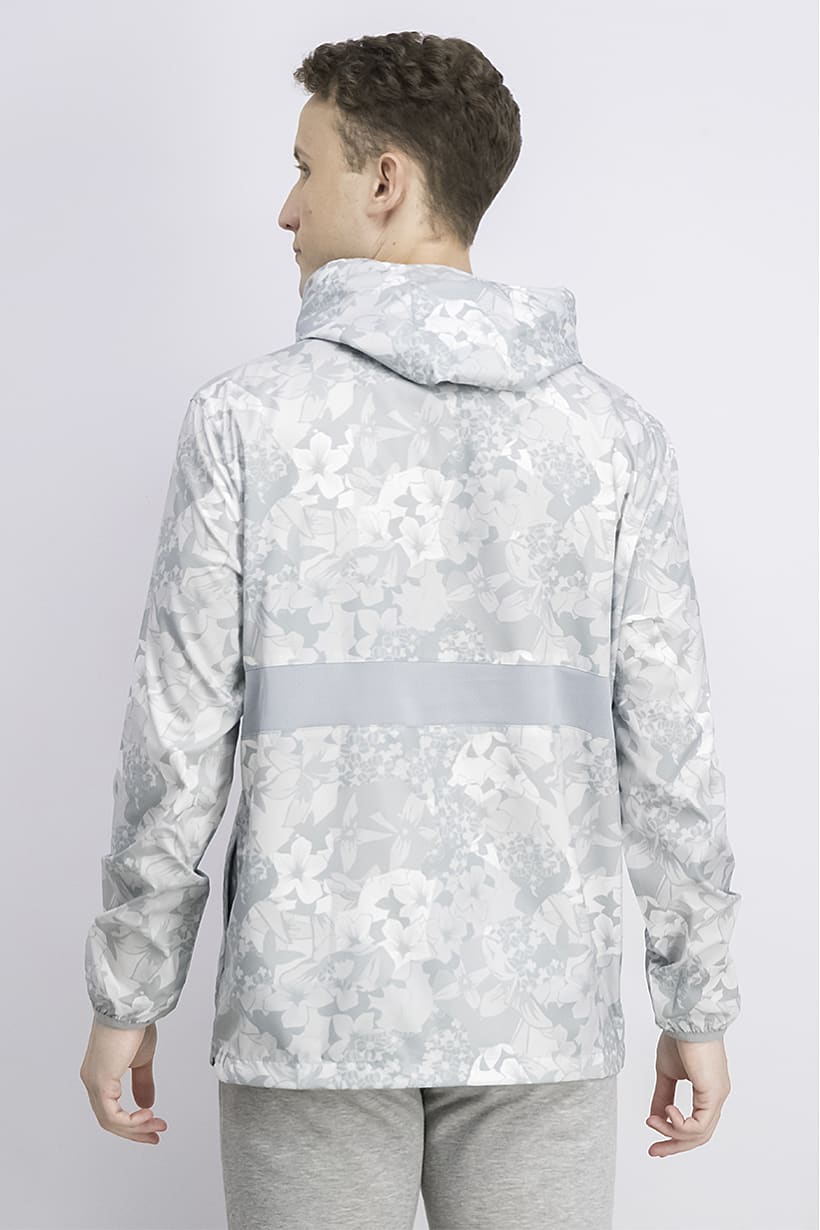 Care : Machine washable, Fit : Sportswear Fit, Size shown : US, Thickness : Light, Type of Neckline & Collar : Hood, Type of Sport : Training, Fabrics : 100% Polyester, Pattern & Print : Allover print, Sportswear Type : Jackets, Types of Closures : Zipper closure, Color Family : Grey,