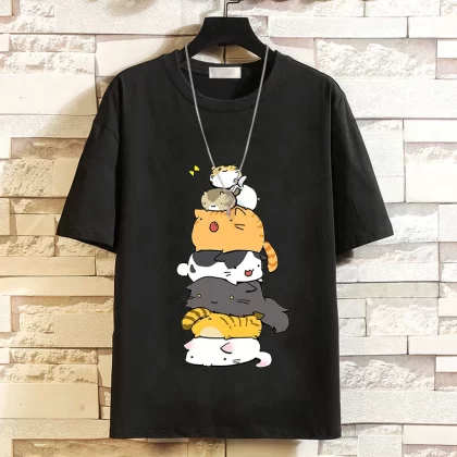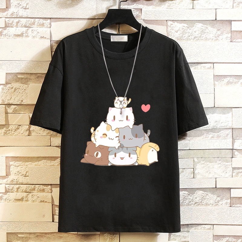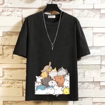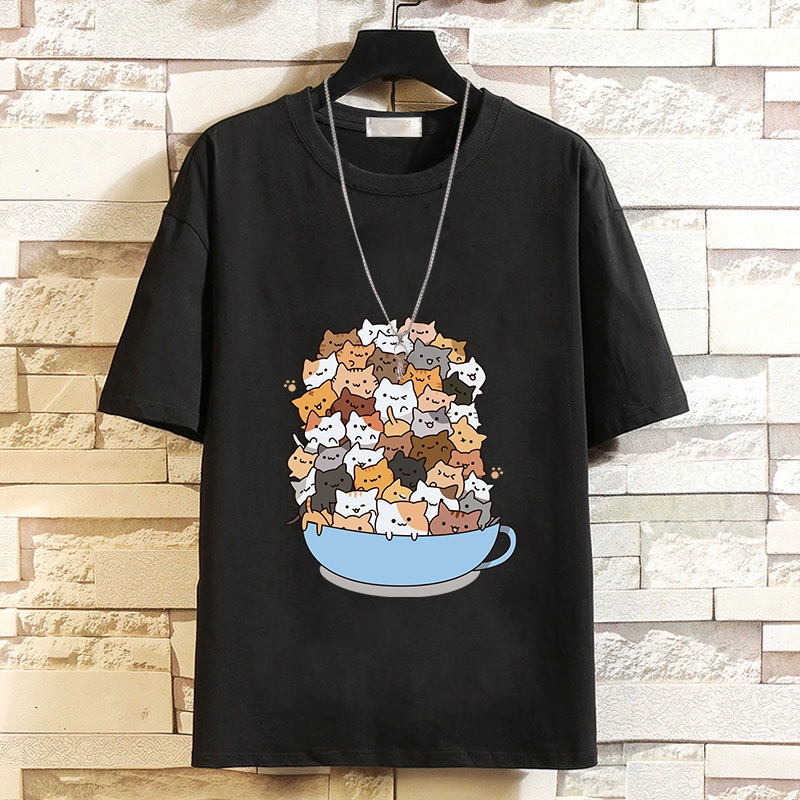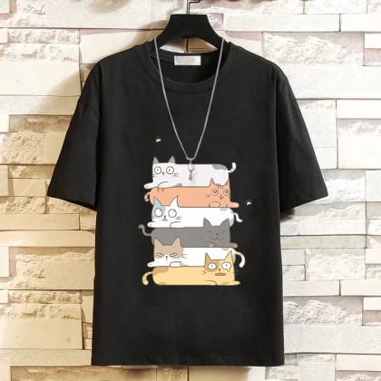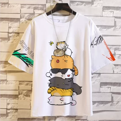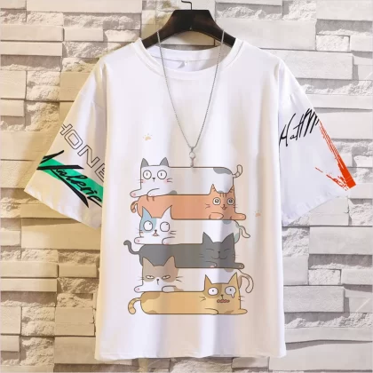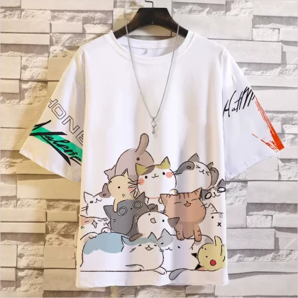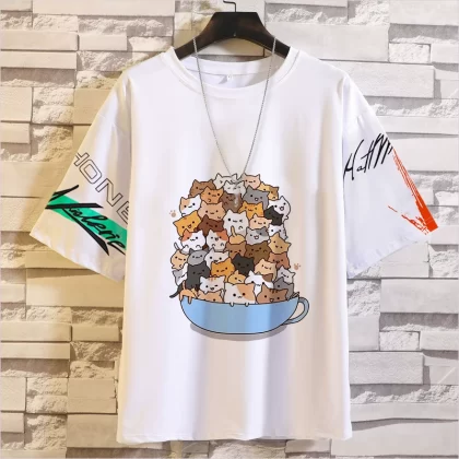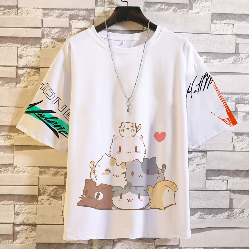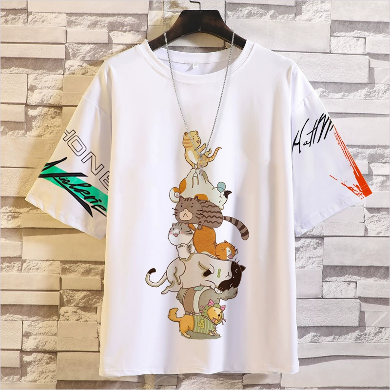 Quarter sleeve trendy large size cat handsome student t-shirt