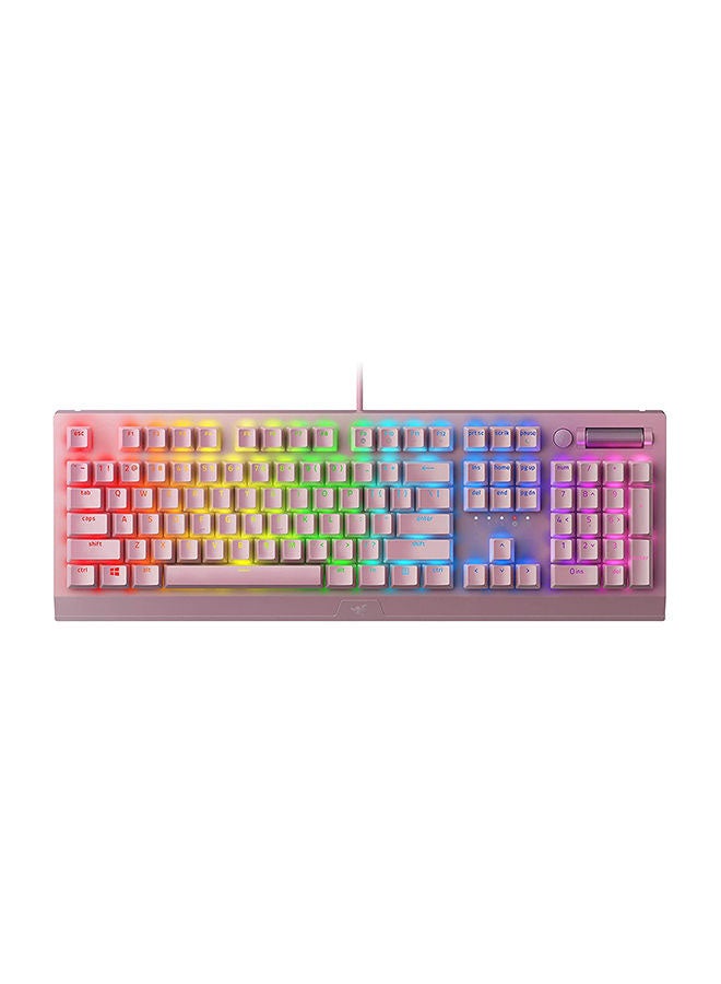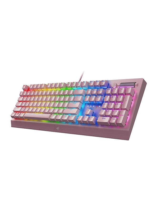 | nameOriginal | BlackWidow V3 Mechanical Gaming Keyboard – Green Mechanical Switches, Tactile & Clicky, Chroma RGB Lighting, Fully Programmable Keys with Ergonomic Wrist Rest – Quartz Pink |
