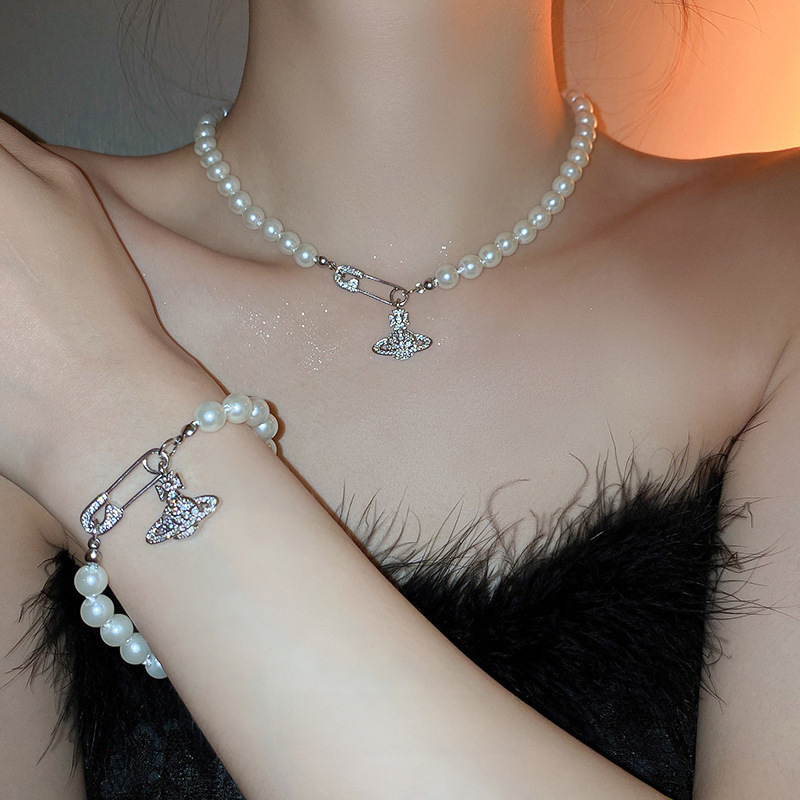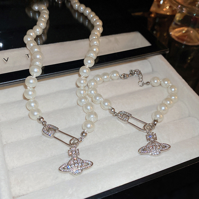 | nameOriginal | Queen mother planet zircon pearl bracelet necklace suit design clavicle chain niche light luxury high-grade necklace |