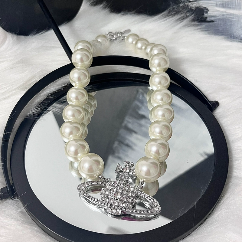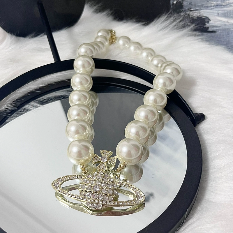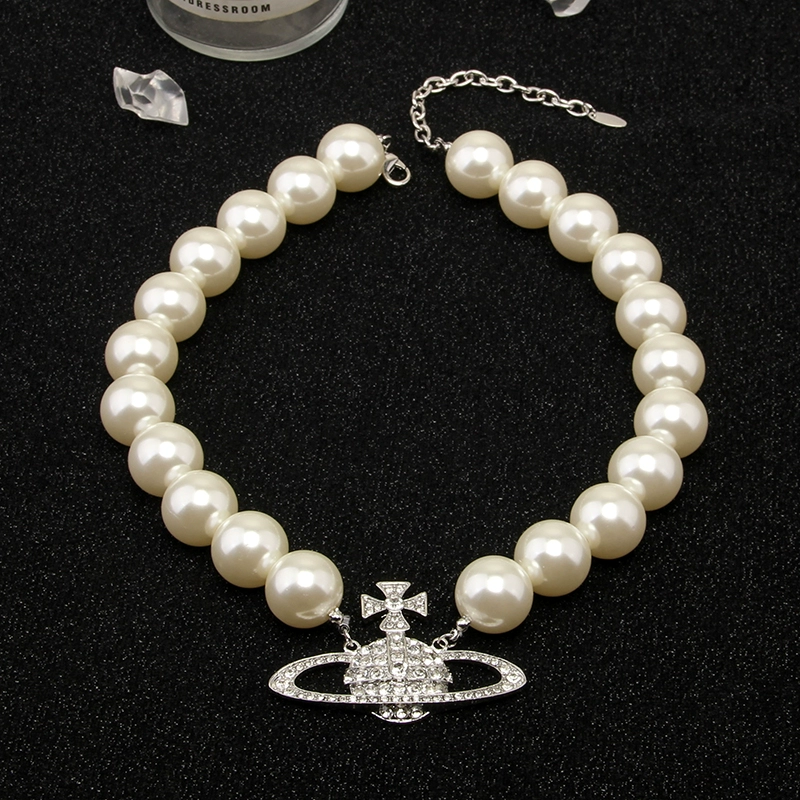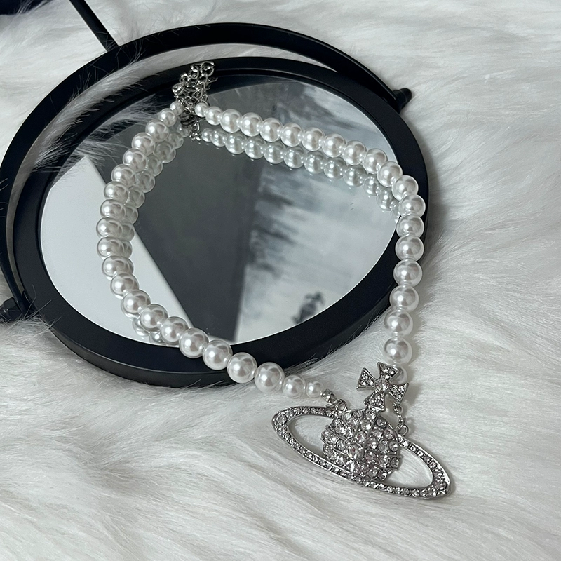 Queen Mother Vivian’s large pearl full diamond Saturn pendant necklace light luxury niche retro choker necklace for women
