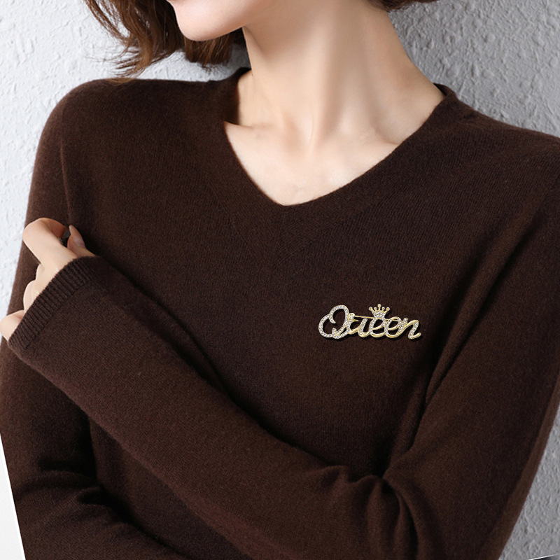 | nameOriginal | Queen Queen letter brooch new high-end quality Crown corsage anti-exposure pin rhinestone simple pin |