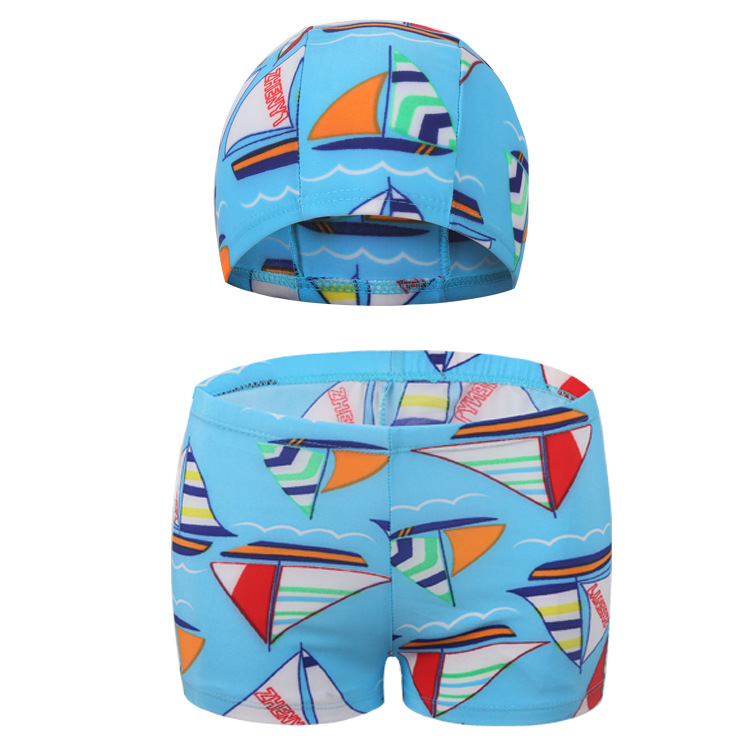 | nameOriginal | Quick-drying children's swimming trunks boys swimming cap set Korean cute cartoon printed beach boxers swimming trunks wholesale |