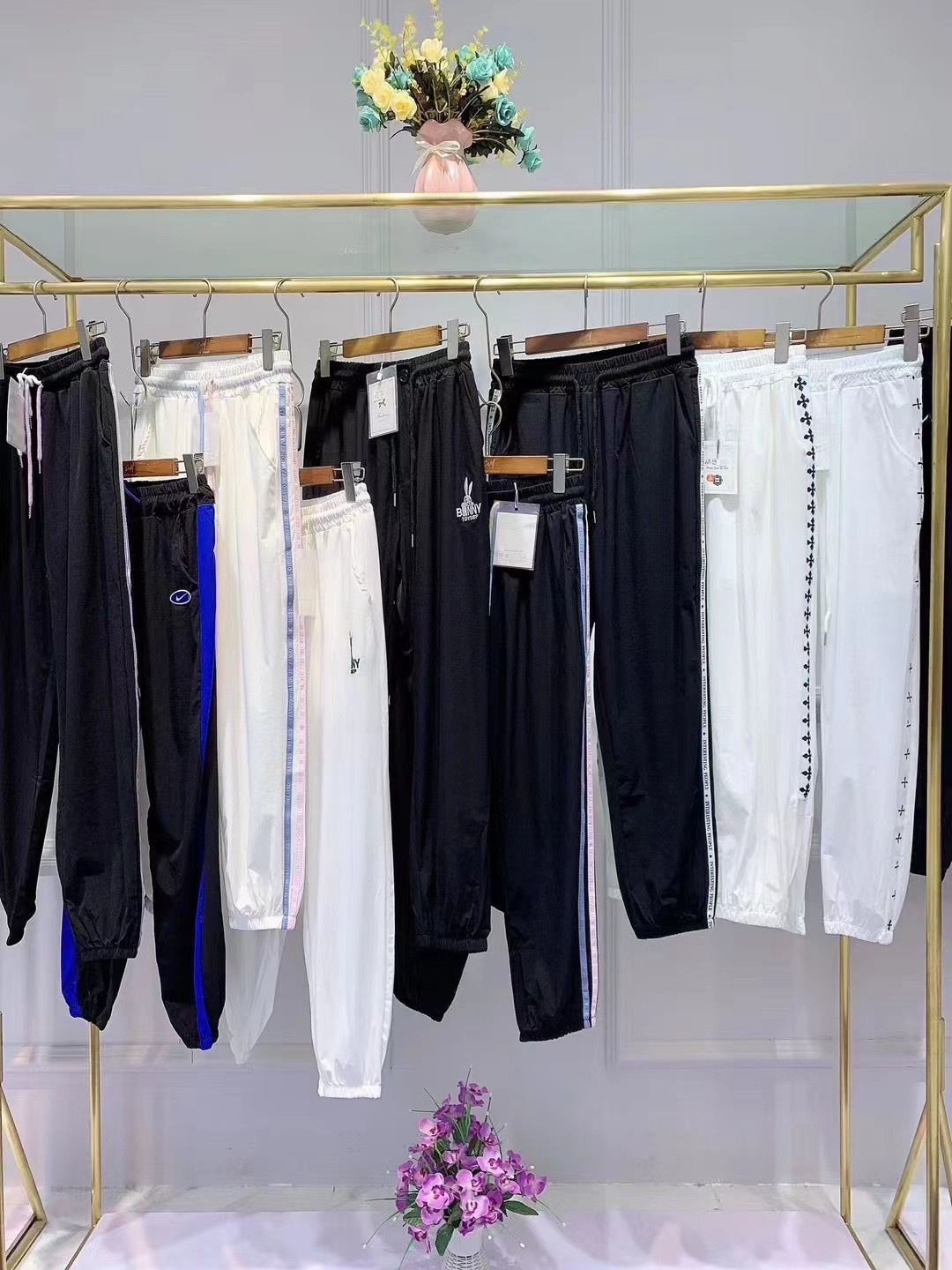 Quick-drying pants women's summer white mask trousers ice silk elastic waist high waist pants brand discount tail miscellaneous