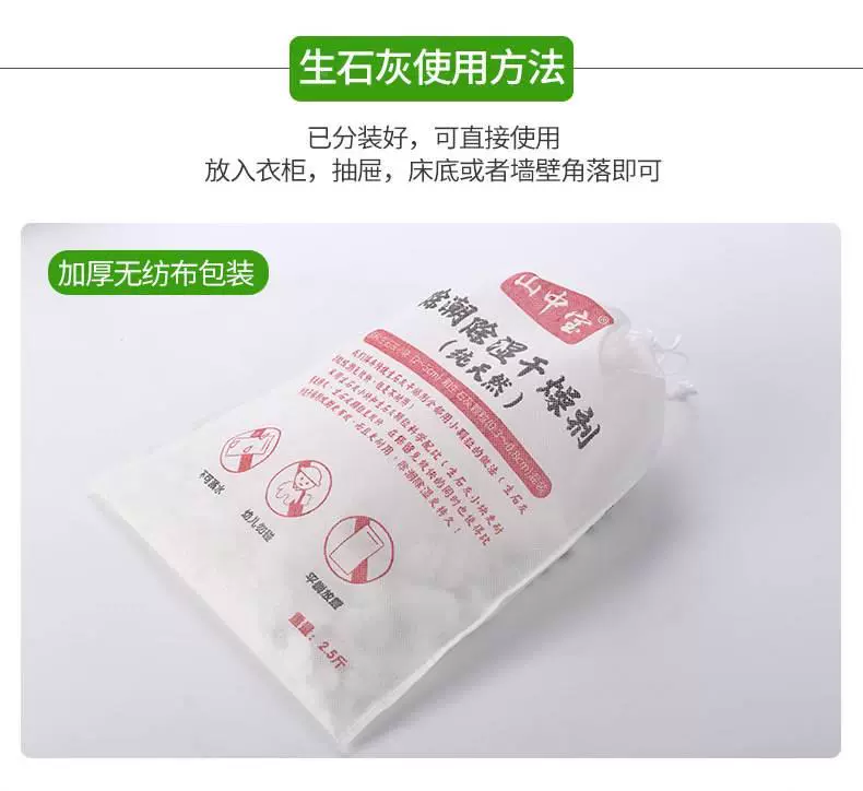 | nameOriginal | Quick lime desiccant moisture absorption indoor room household basement warehouse first floor moisture-proof and mildew-proof bag dehumidification |