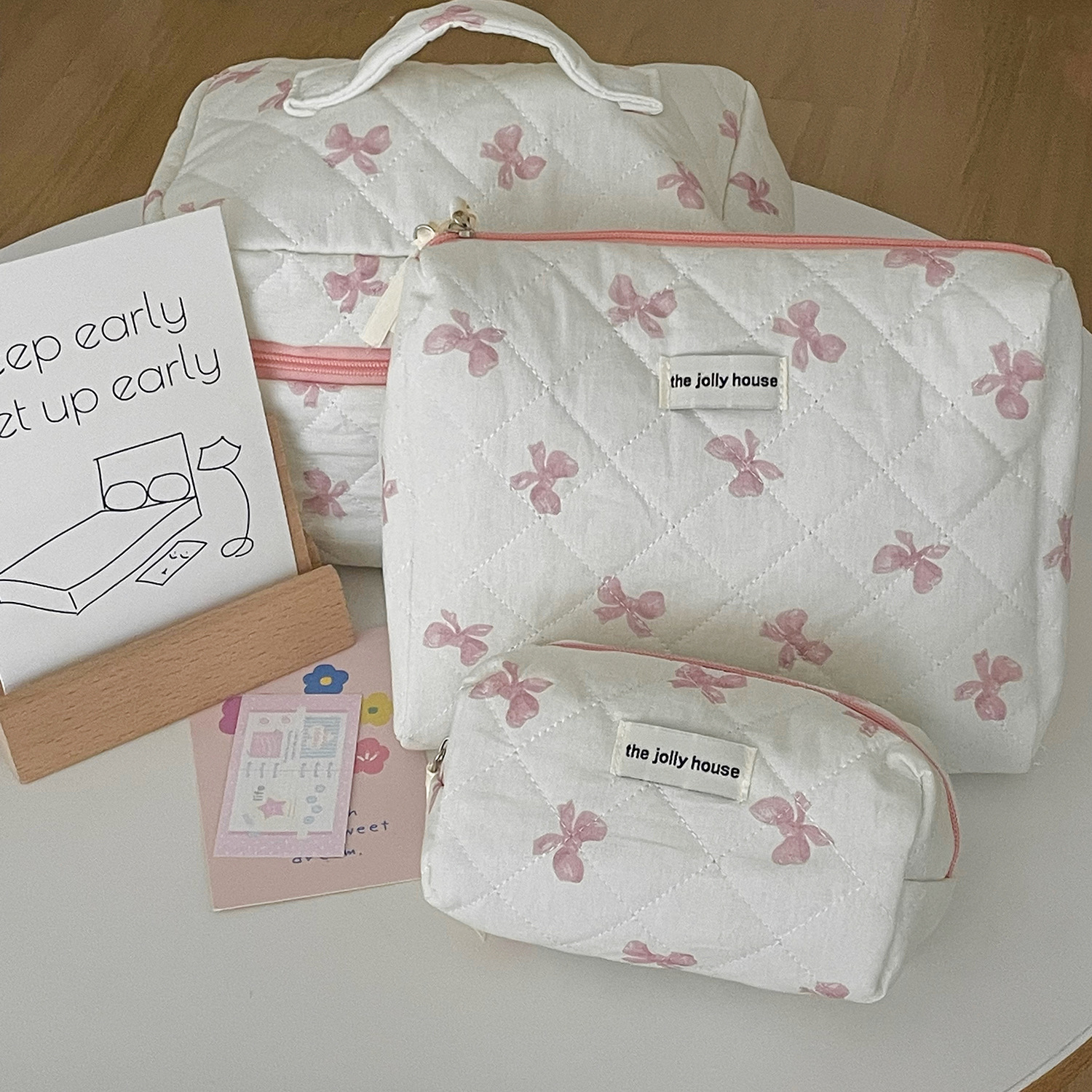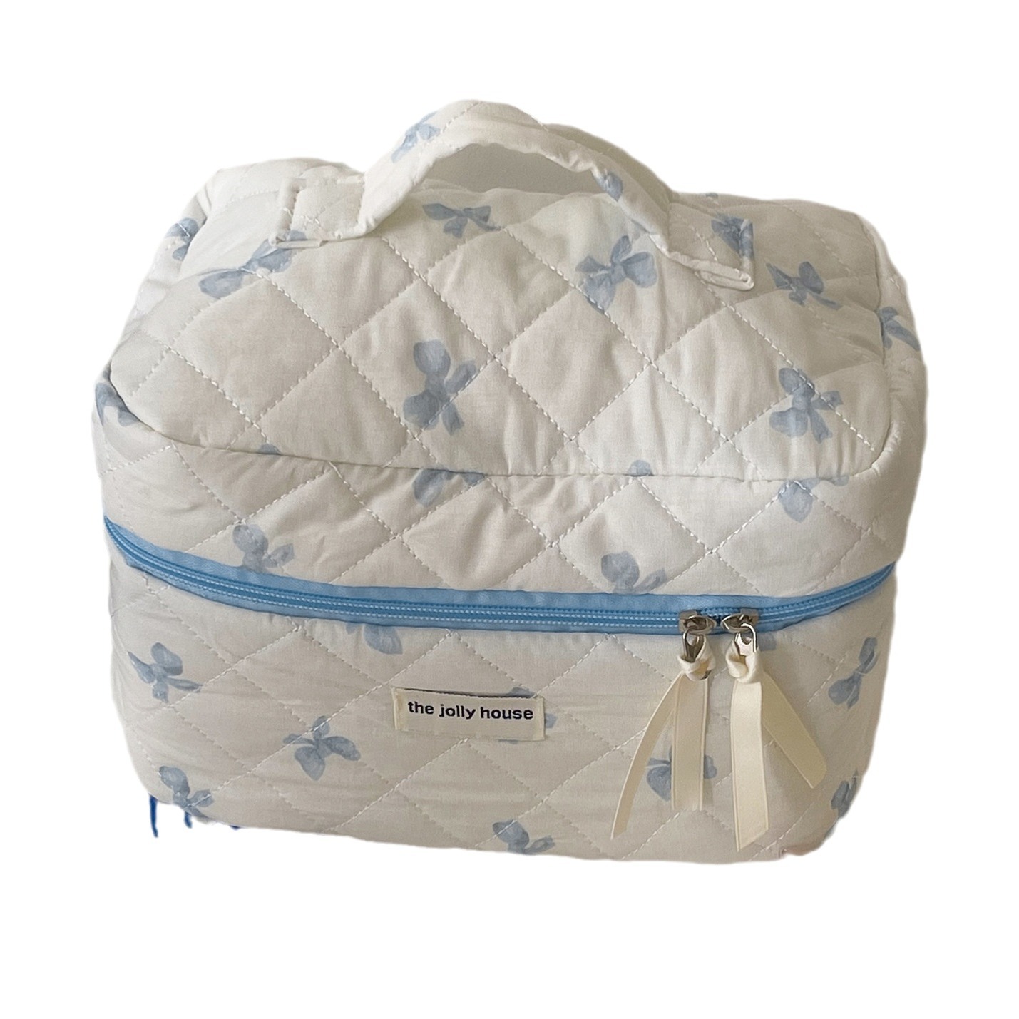 | nameOriginal | Quilted White Bow Makeup Bag Small Fresh Cute Student Portable Storage Bag Wash Bag Large Capacity Bag |