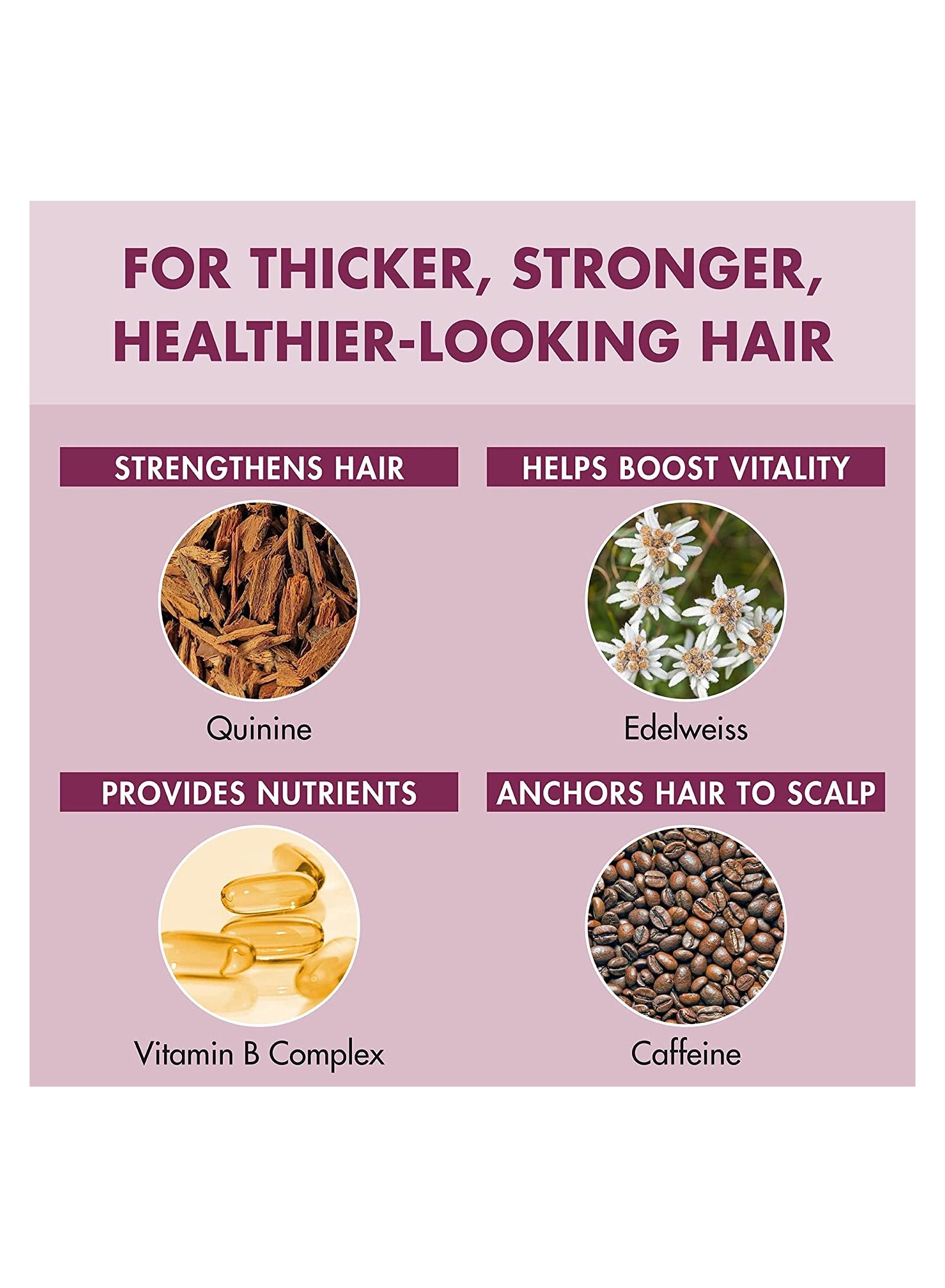 Quinine, a natural ingredient derived from the bark of the cinchona tree, is known for its ability to stimulate hair growth and prevent hair loss. Edelweiss, a rare flower found in the Swiss Alps, is rich in antioxidants and has been used for centuries to promote healthy hair growth.
