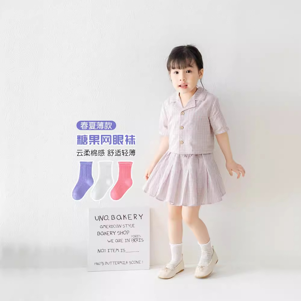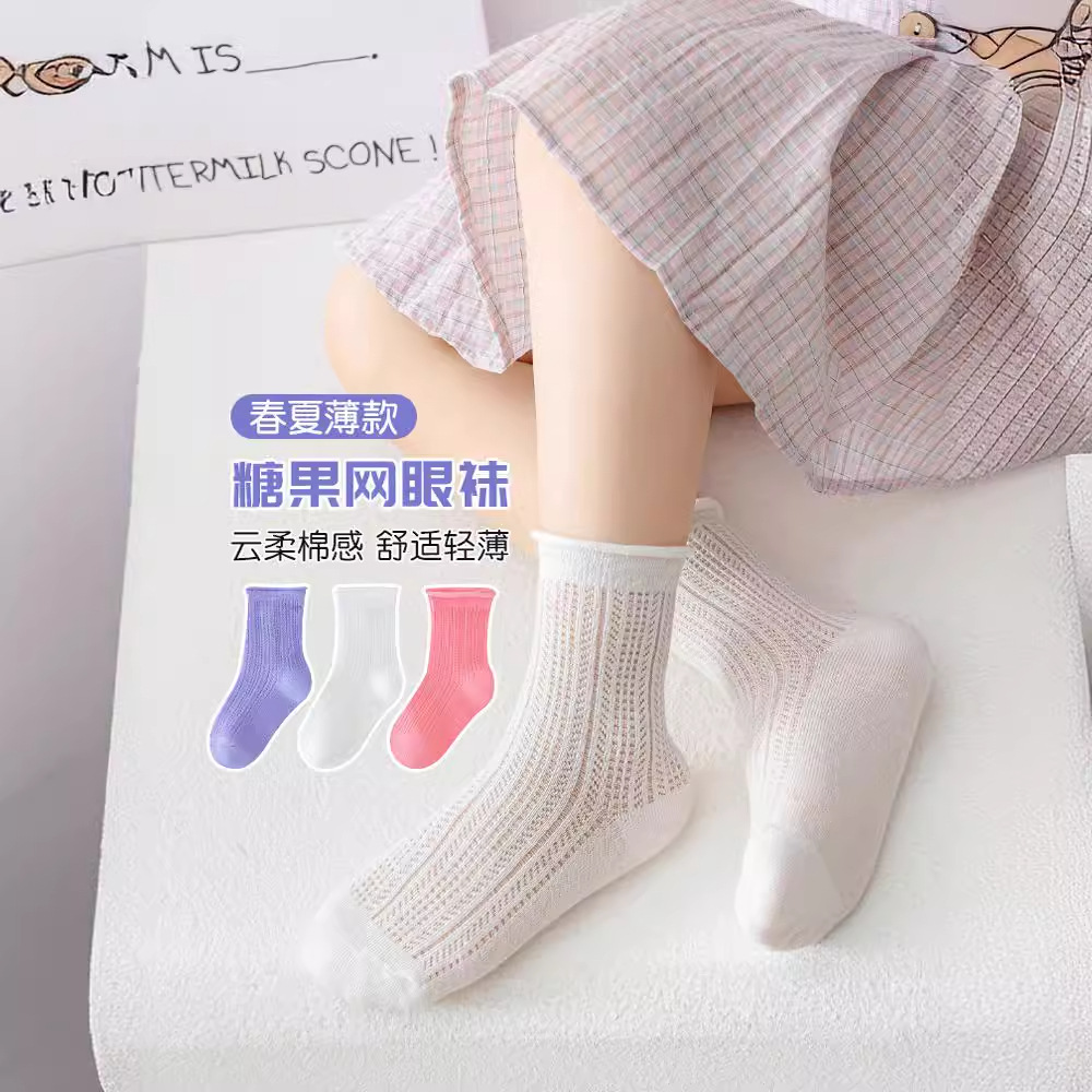 | nameOriginal | QW2026 candy color solid color curling children's socks 24 summer new mesh thin boys' and girls' mid-calf length socks |