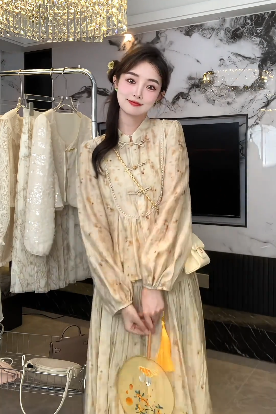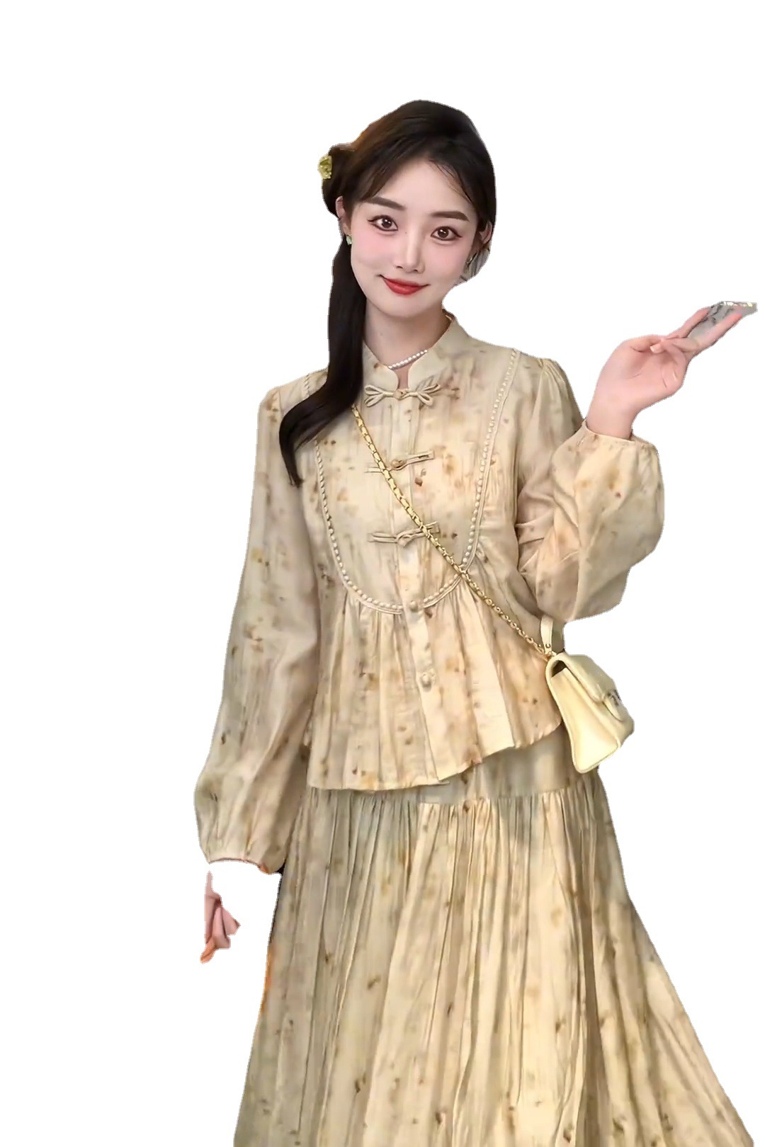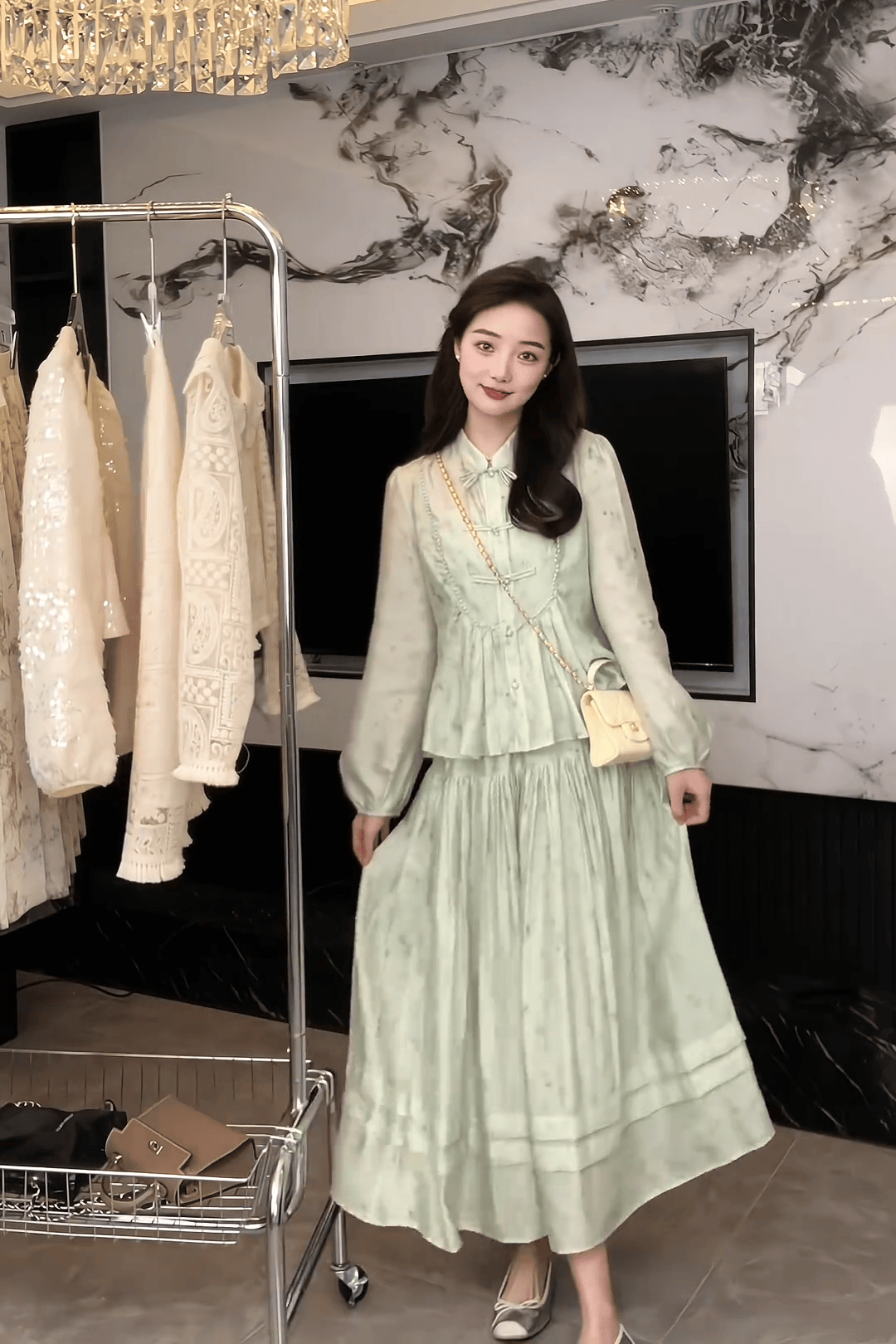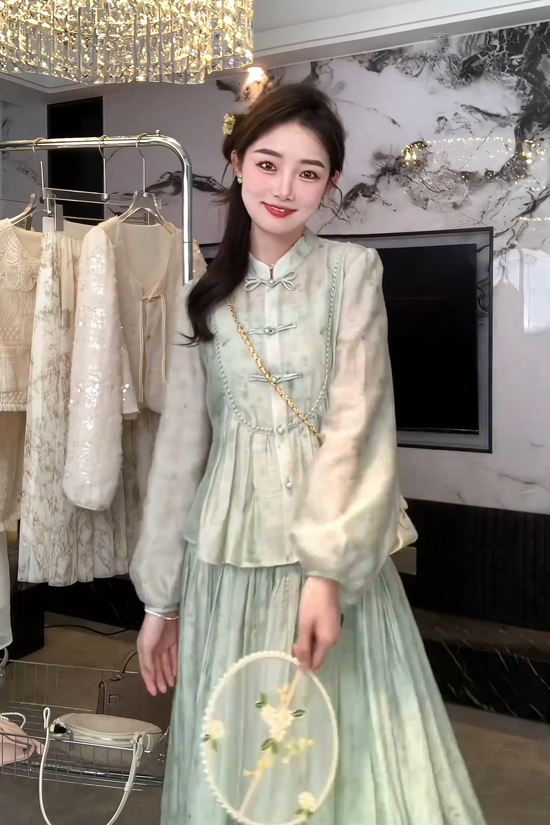 | nameOriginal | R2 New Chinese Style National Style suit Women's Early Spring New Mint Man Green Elegant Buckle Long-sleeved Shirt Two-piece Skirt |