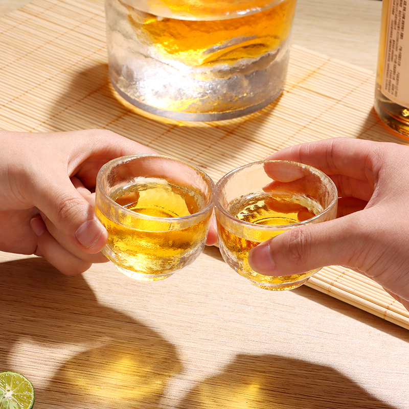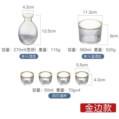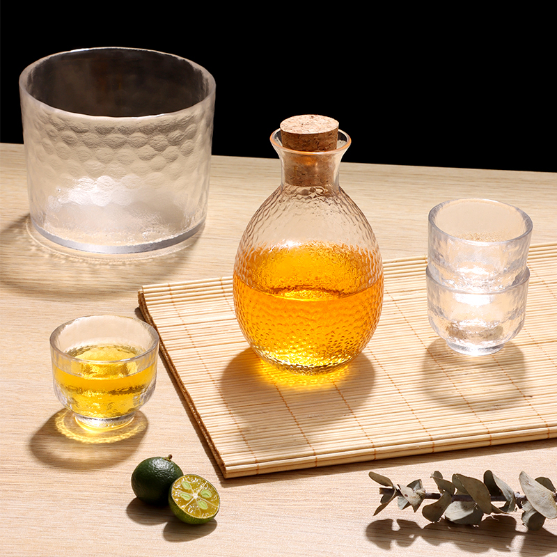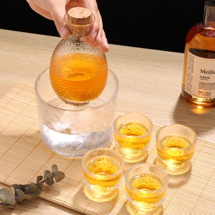 R9DC baijieqing wine pot suit household Japanese-style glass yellow wine ice plum wine fruit wine cup sake glass Commercial 1 pot 4