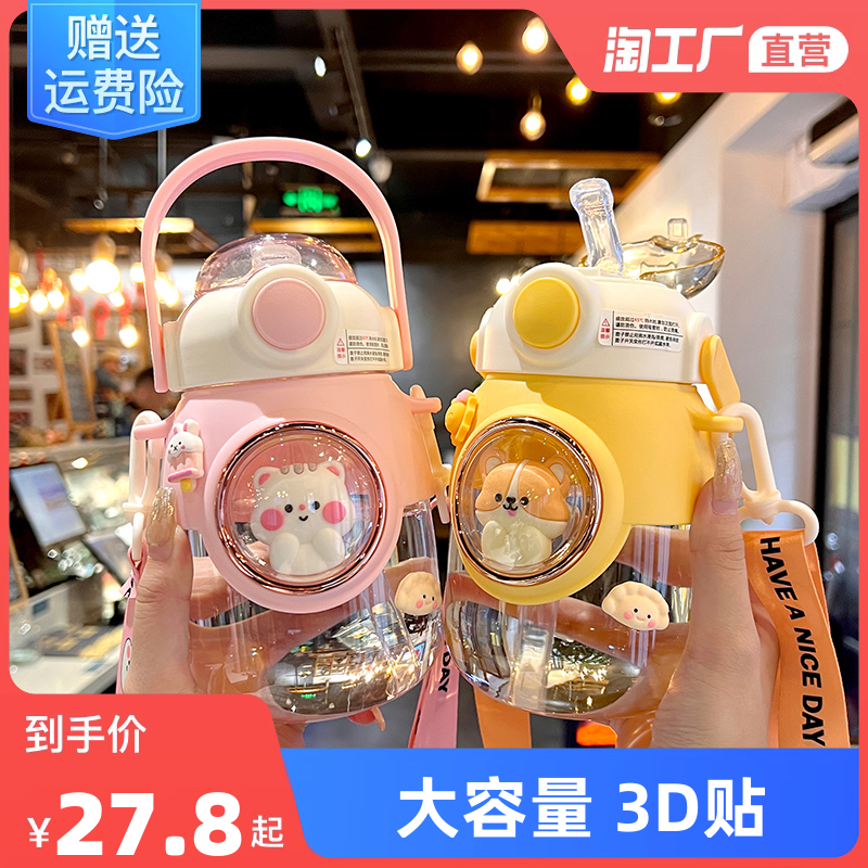 | nameOriginal | R9DC big belly Cup women's large capacity water cup plastic straw primary school student school 2023 new high-resistant |