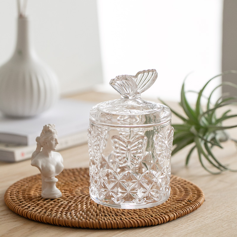 | nameOriginal | R9DC French glass relief sugar jar cotton swab storage jar dry candy jar crystal jewelry ins light luxury storage teeth |