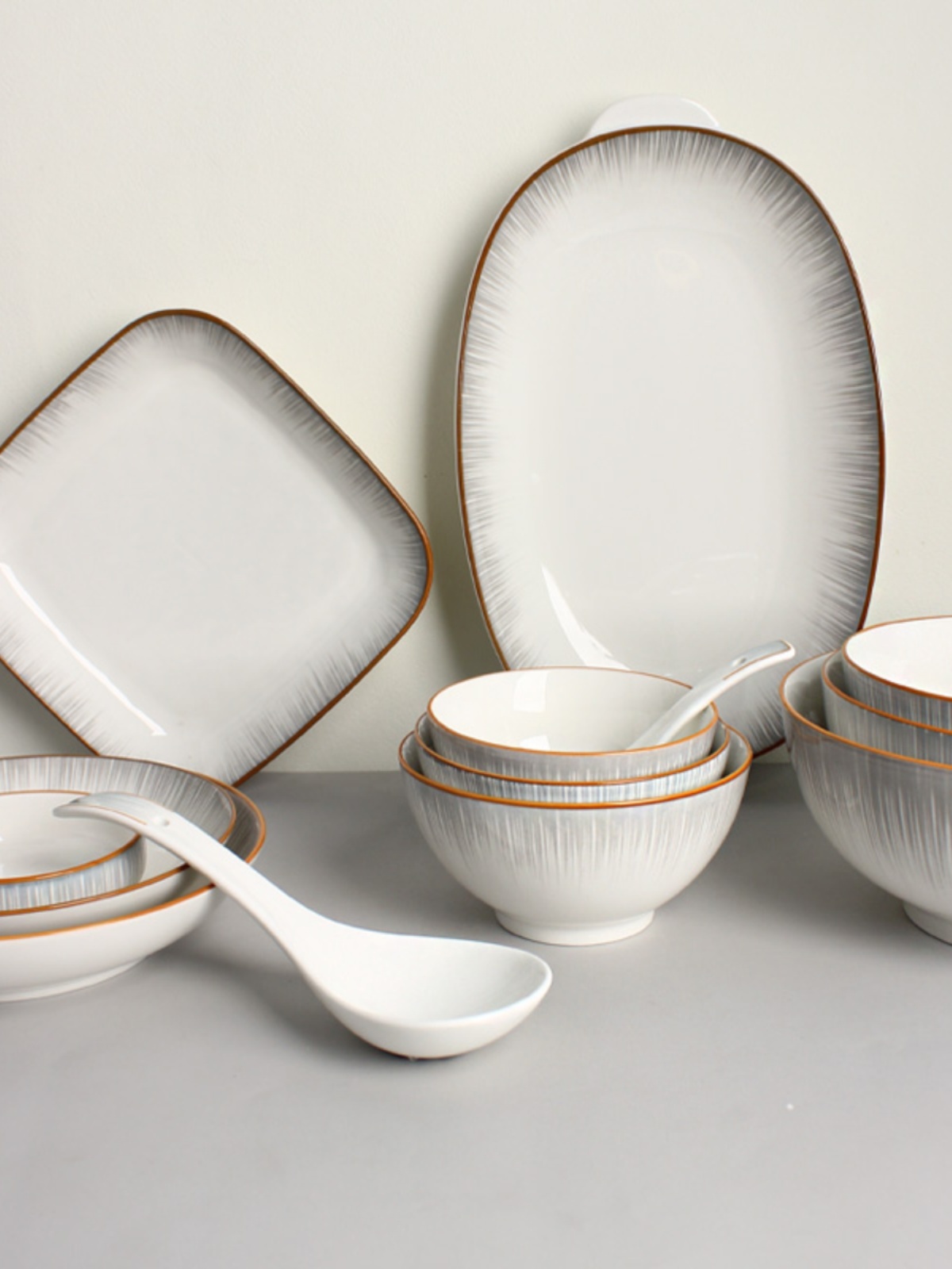 | nameOriginal | R9DC household ceramic plate tableware bowl fashionable simple gray underglaze color 8-inch rice plate fish plate 7 bowls high temperature resistant |