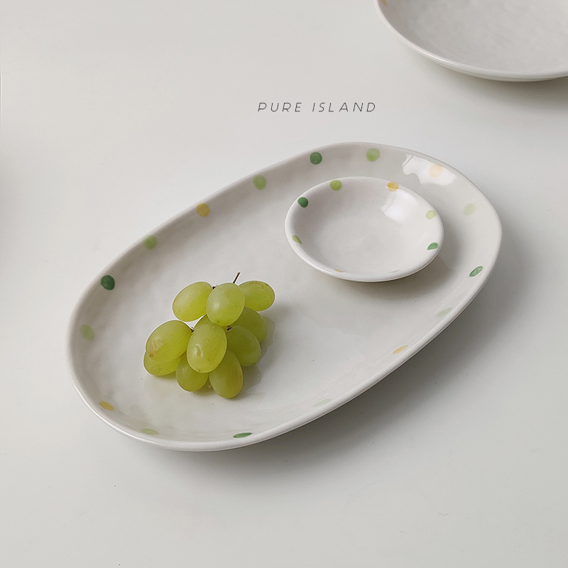 R9DC Japanese style polka dot ceramic plate suit fresh breakfast plate snack plate cake plate flavor plate Oval