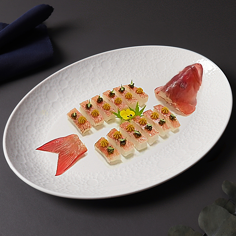 | nameOriginal | R9DC large size steamed fish plate soup plate cold dish display plate Oval fish plate commercial hotel household  |