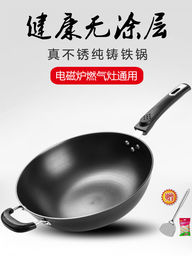 | nameOriginal | R9DC real stainless wok flat bottom wok raw iron wok wholesale cast iron pan non-stick pan uncoated scratch-resistant |