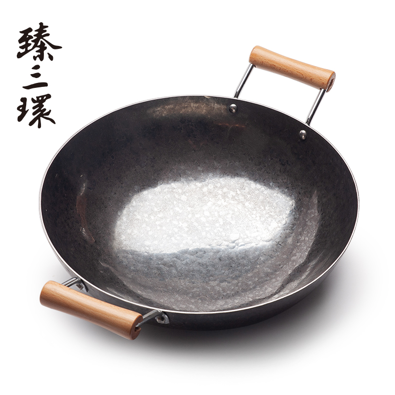 | nameOriginal | R9DC zhensanhuan Zhangqiu handmade iron pan not easy to stick pan uncoated wok round melting old-fashioned binaural wok household |