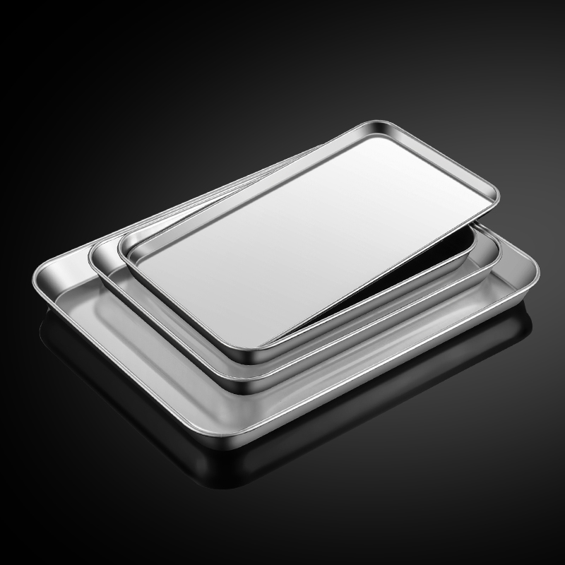 R9DC304 stainless steel sausage powder steaming tray Baking tray household rectangular flat tray small sausage powder tool