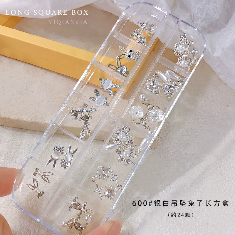 Rabbit Mixed Flat Diamond Super Flash Silver Manicure