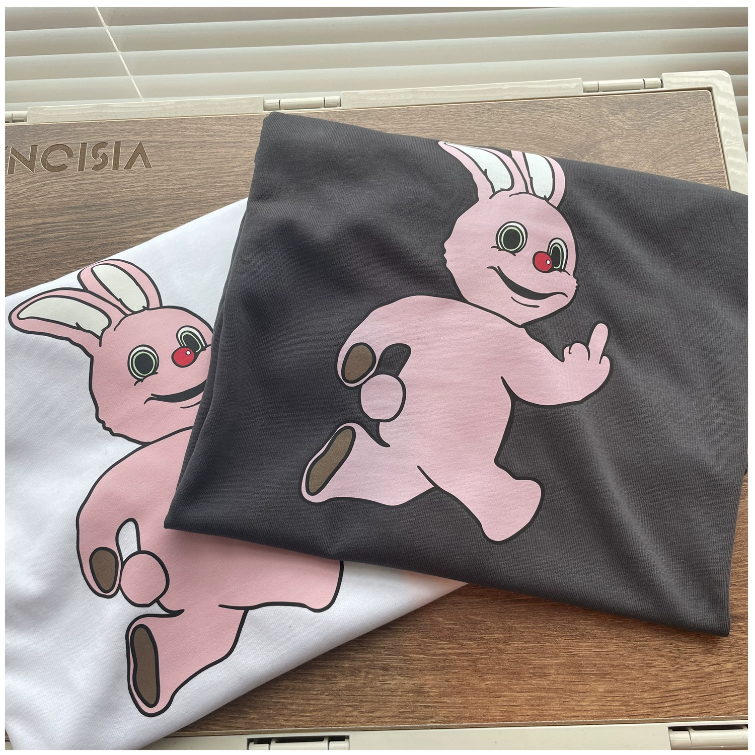 Rabbit pink casual men’s and female print short -sleeved T -shirt
