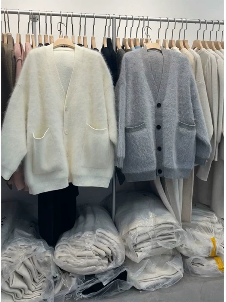 | nameOriginal | Raccoon fleece sweater knitted lazy style V-neck cardigan |