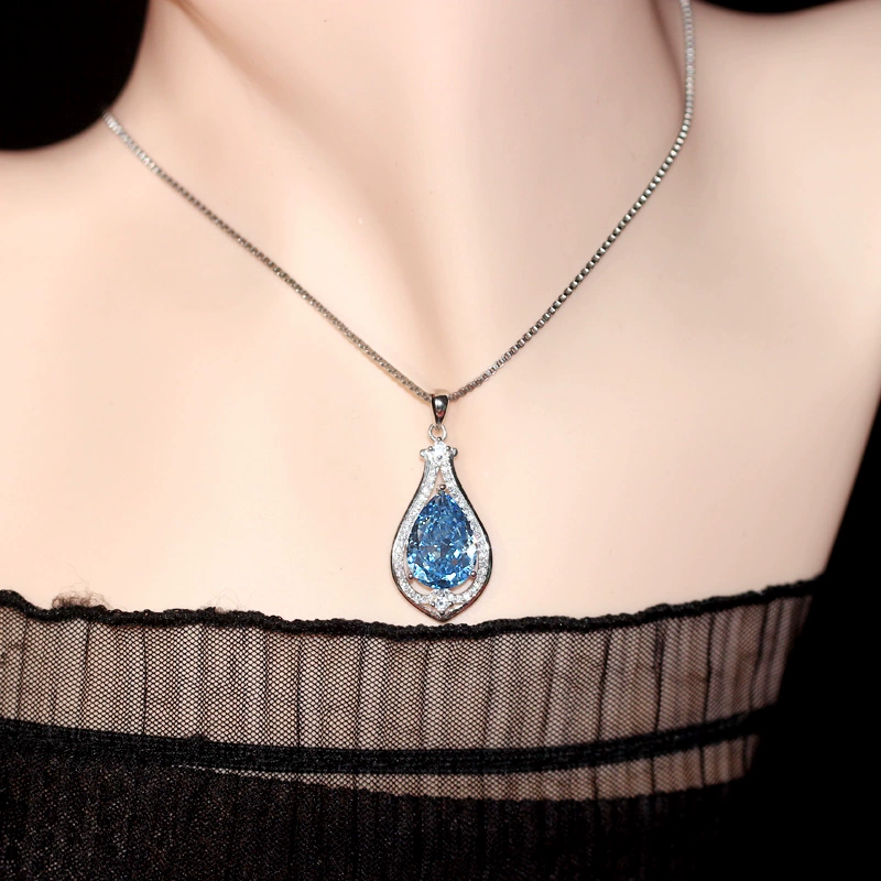| nameOriginal | Radiant Ice Flower Cut Blue Diamond Pendant Necklace for Women Water Drop Blue High Carbon Diamond 925 Sterling Silver Light Luxury Niche |