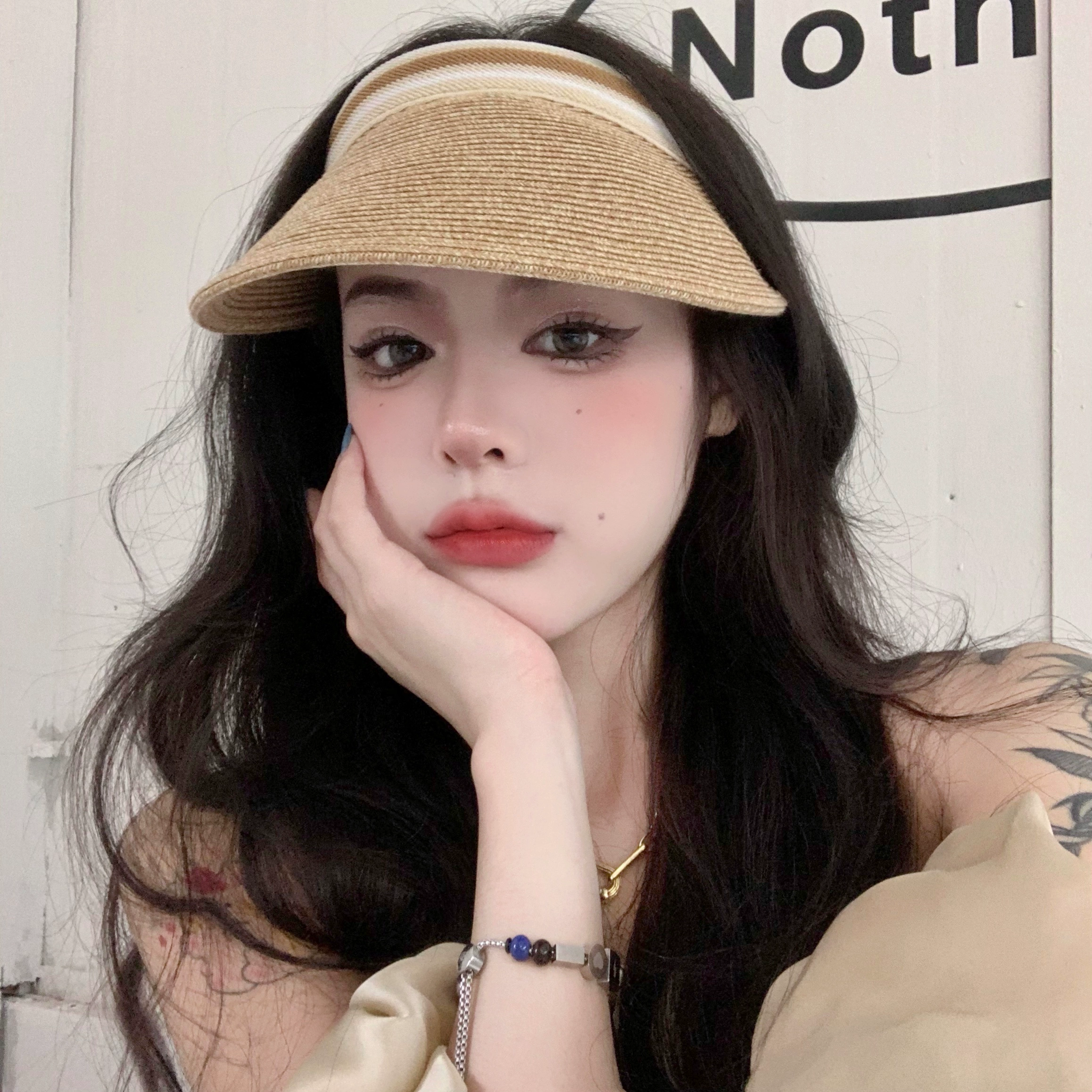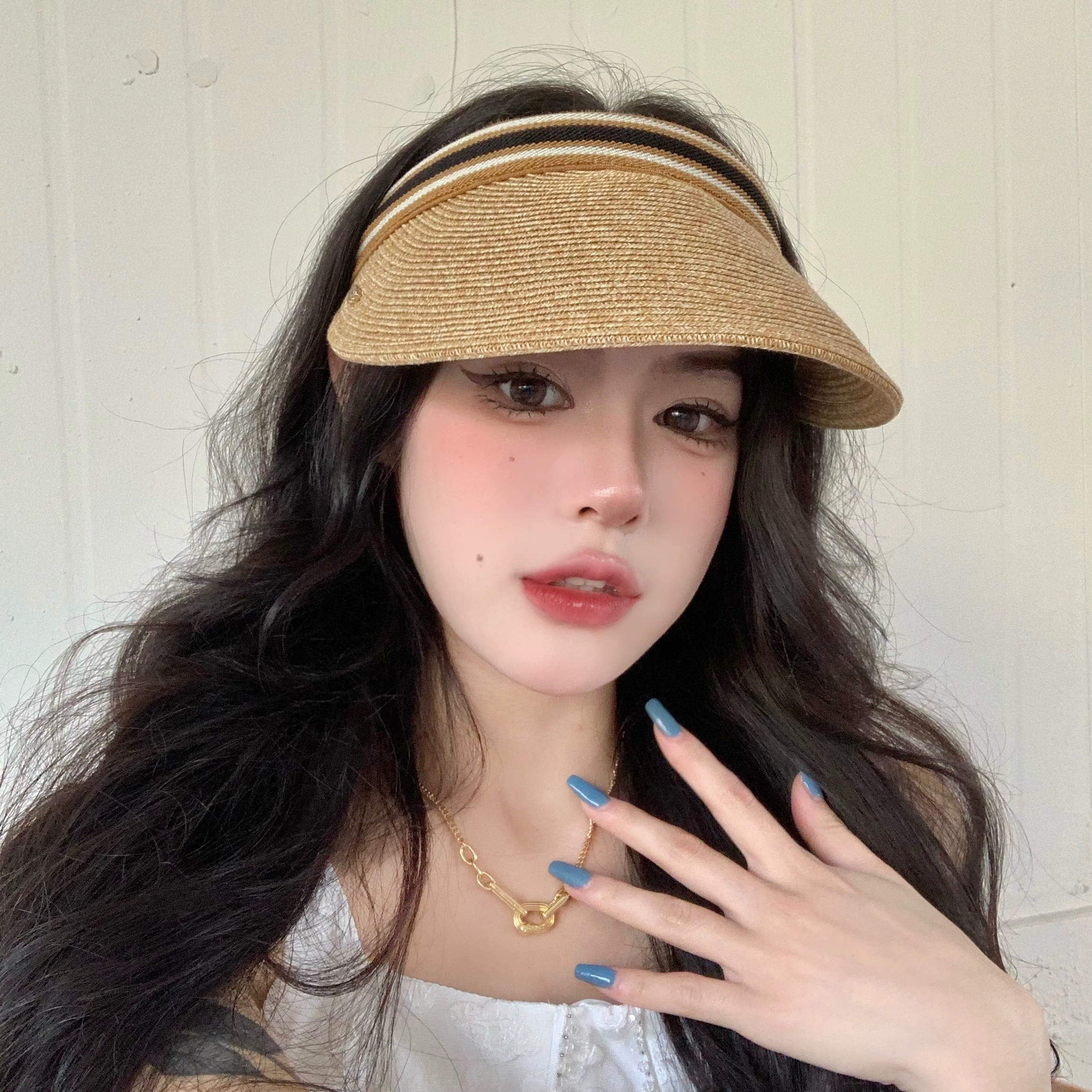| nameOriginal | Raffia empty top hat women's summer sun protection sun hat anti-UV topless cap ins shell hat |